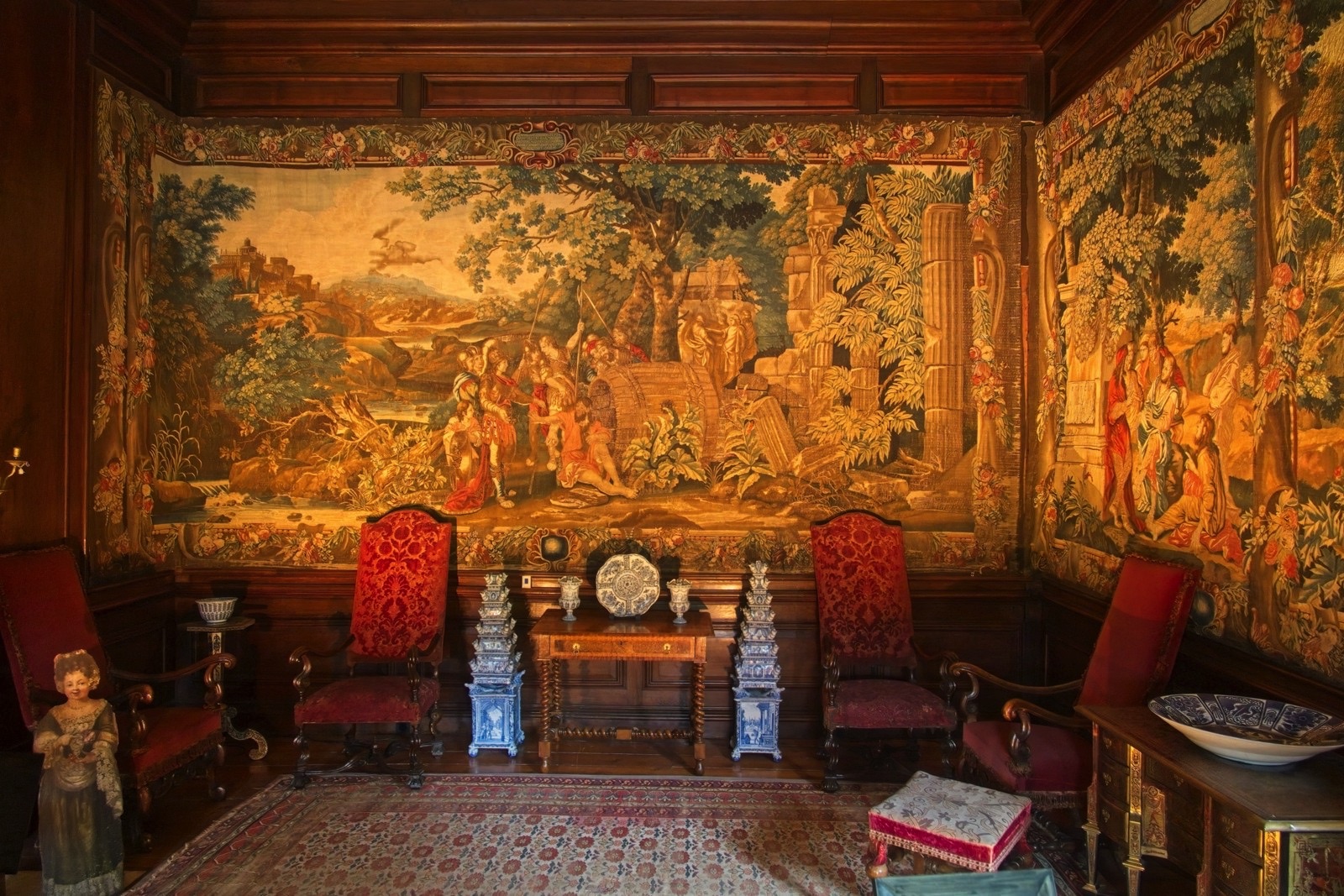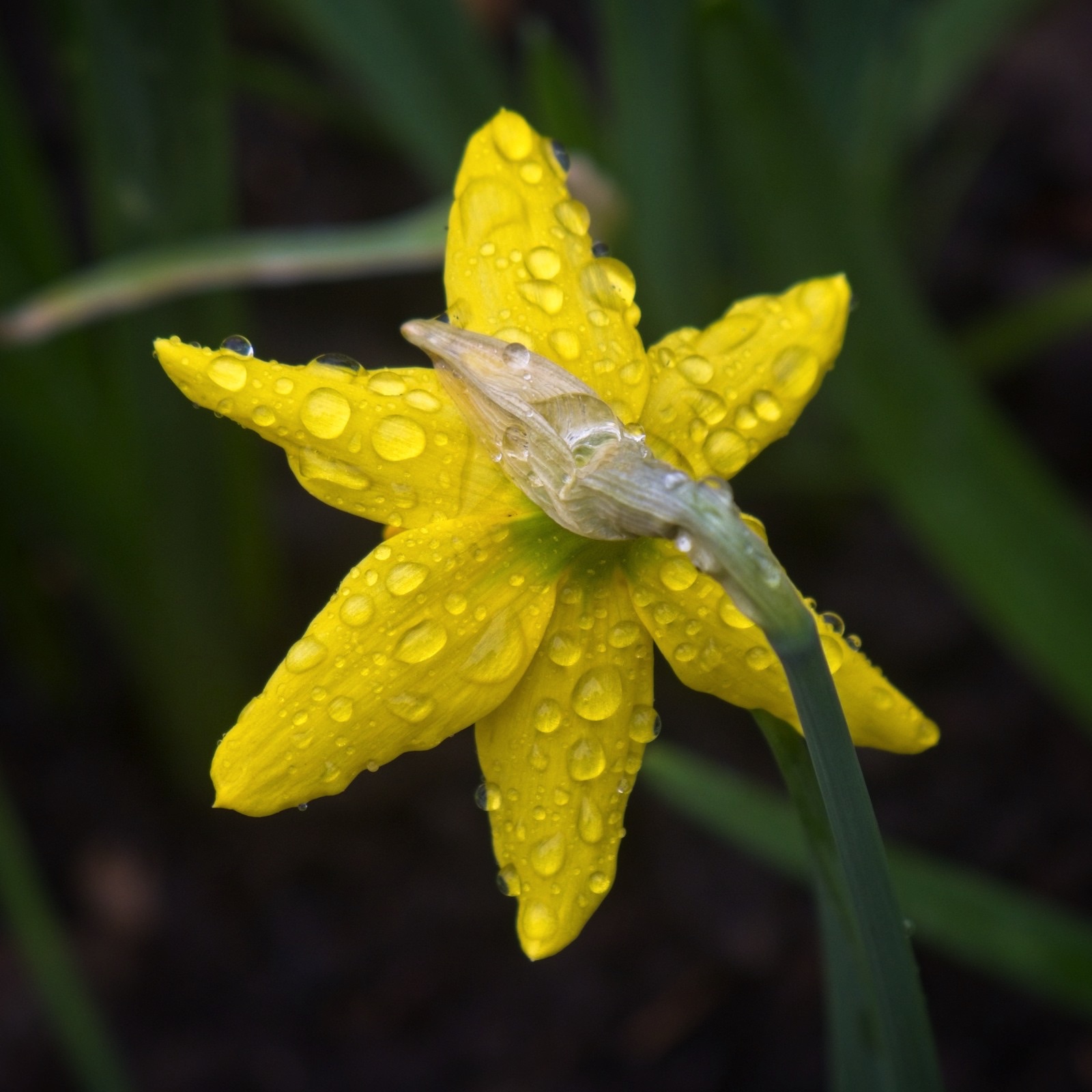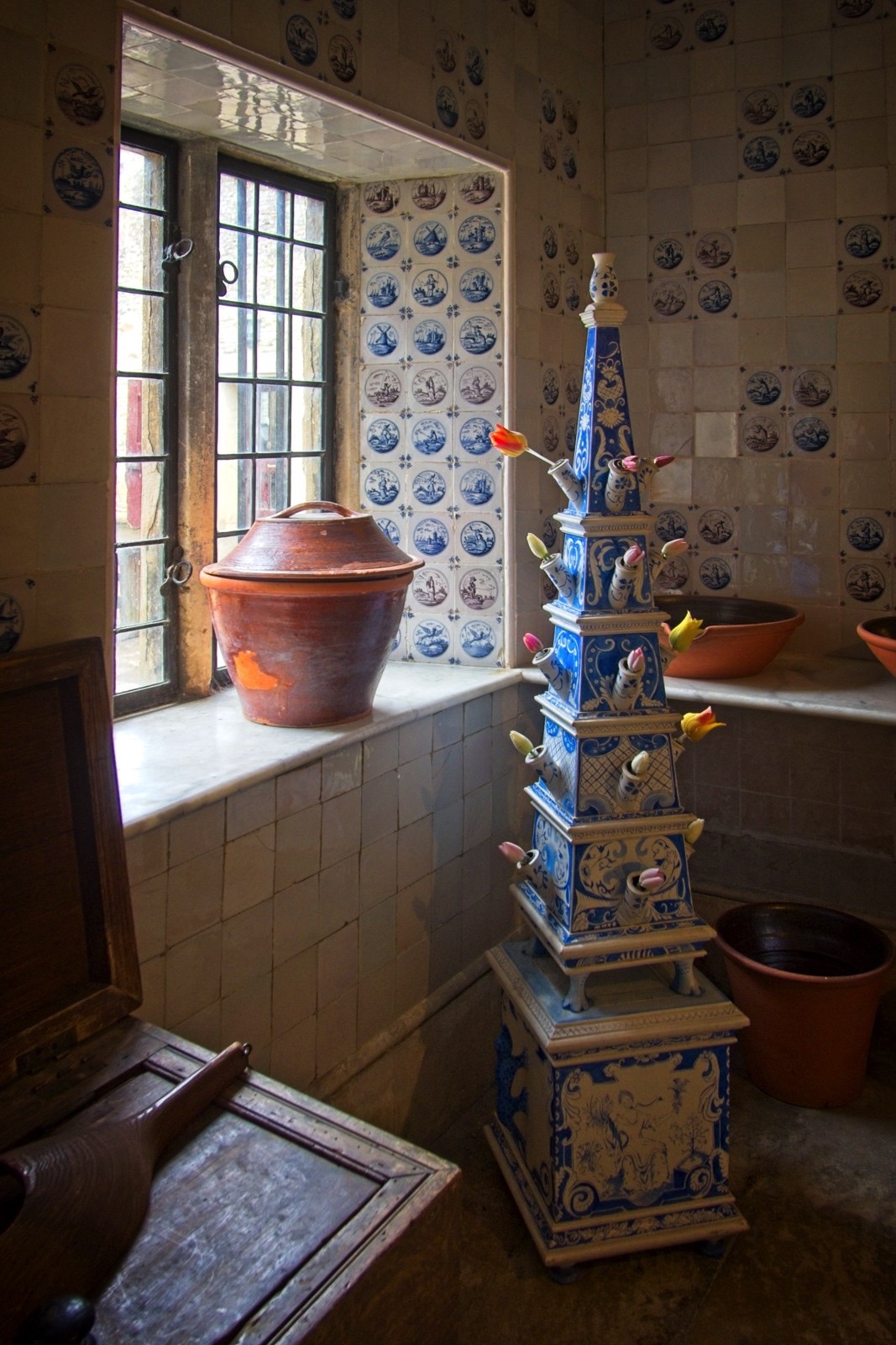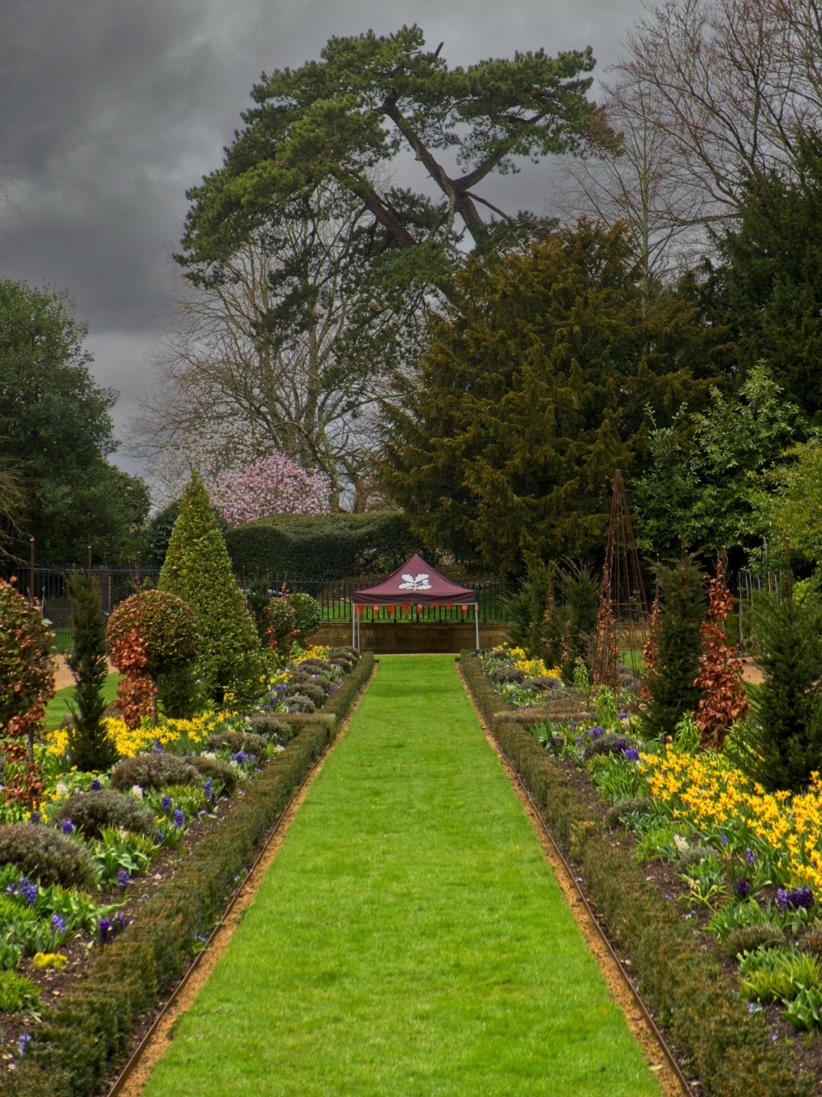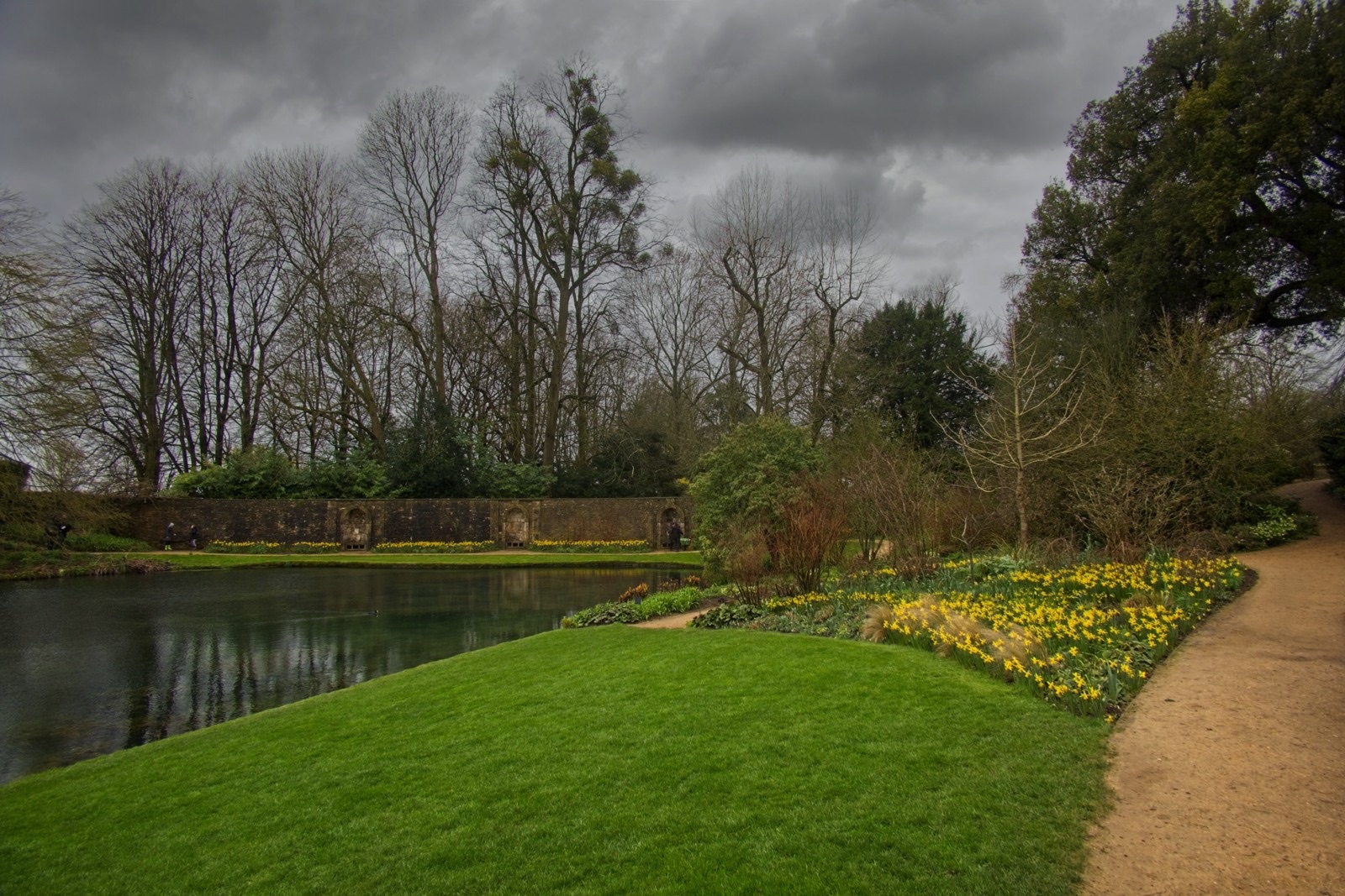 Following on from my post from Bristol yesterday here are some pictures from Dyrham Park near Bath from Wednesday. It was not exactly dry but also not terribly wet as you can see with Deborah and Tim well dressed for the weather. It is a fair distance down to the house and gardens and as Tim and I can attest it seems a bit further back up the hill. There were echos in my mind of a Billy Connolly song “Why Don’t They Come Back To Dunoon” which includes the line “it’s got hills you can walk up as the rain’s running down”. Rain adds a touch of magic to flowers by adding natural water droplets as on the primroses an daffodil. We stopped for a chat with a couple of gardeners who were putting up some natural fencing and did a bit of plant identification for us. The formal gardens looked rather fine. Mr Brathwayte, who built the house, was a lover of Delft pottery and there are quite a few tulip display pots including a couple in a tapestry covered room and one in the Delft tiled kitchen. How about a candle lit selfie with Tim and also Deborah trying on a wig. I’ll finish with a glimpse into the heated greenhouse. There was a range of citrus including what I think are tangerines.