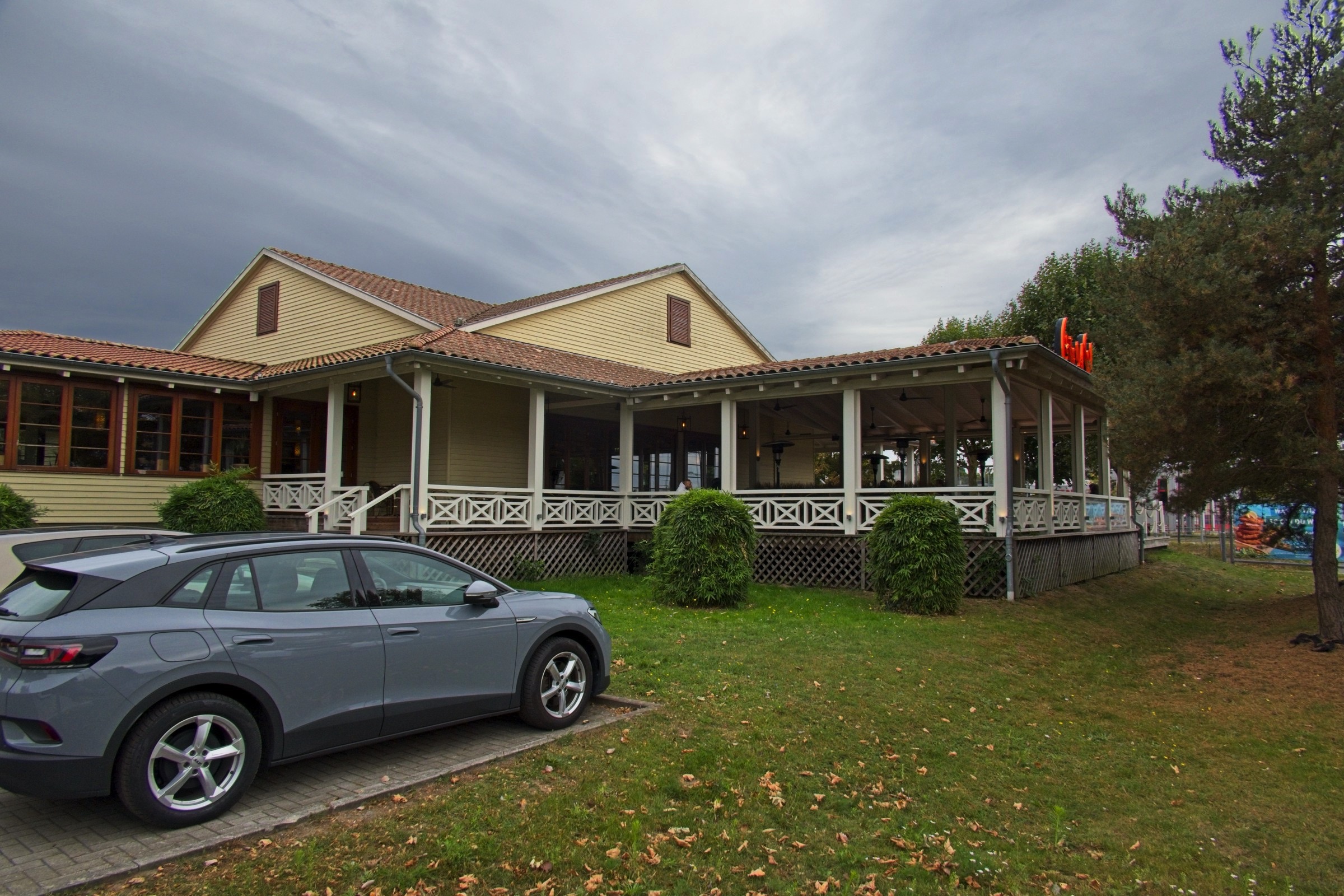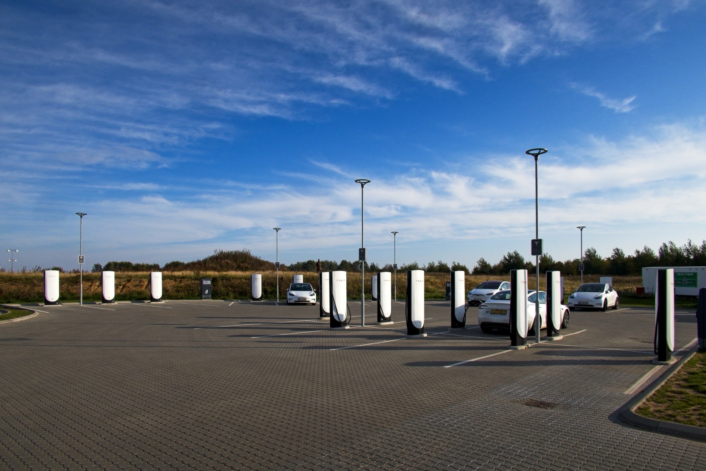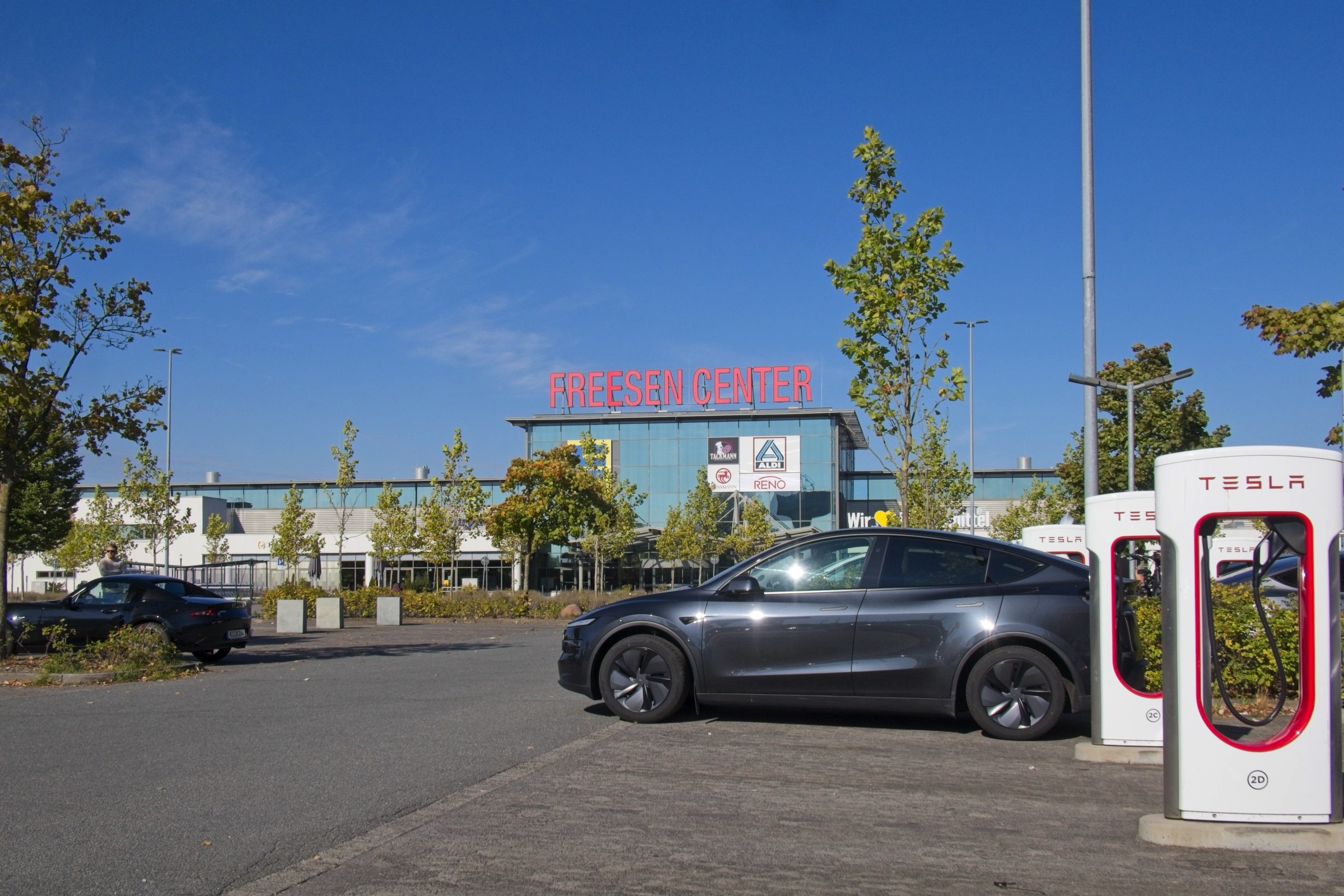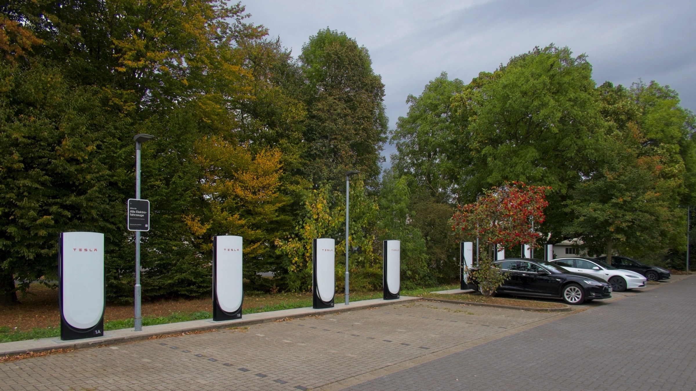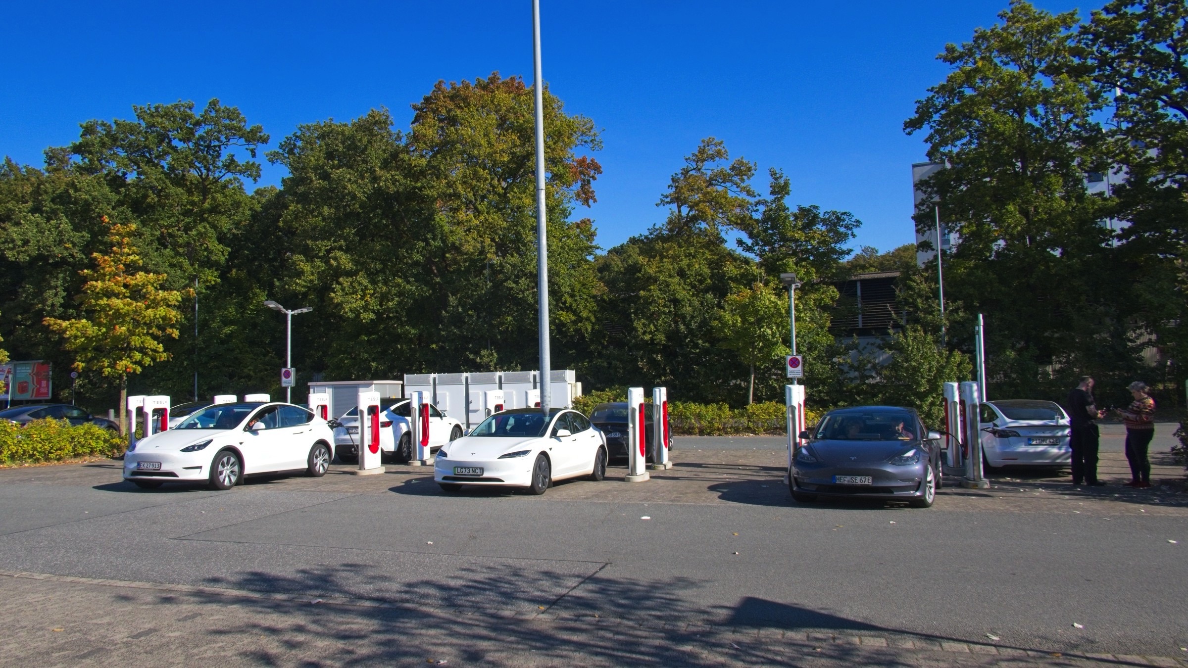 Telsa Supercharger in Bremen in the car park of a restaurant.
