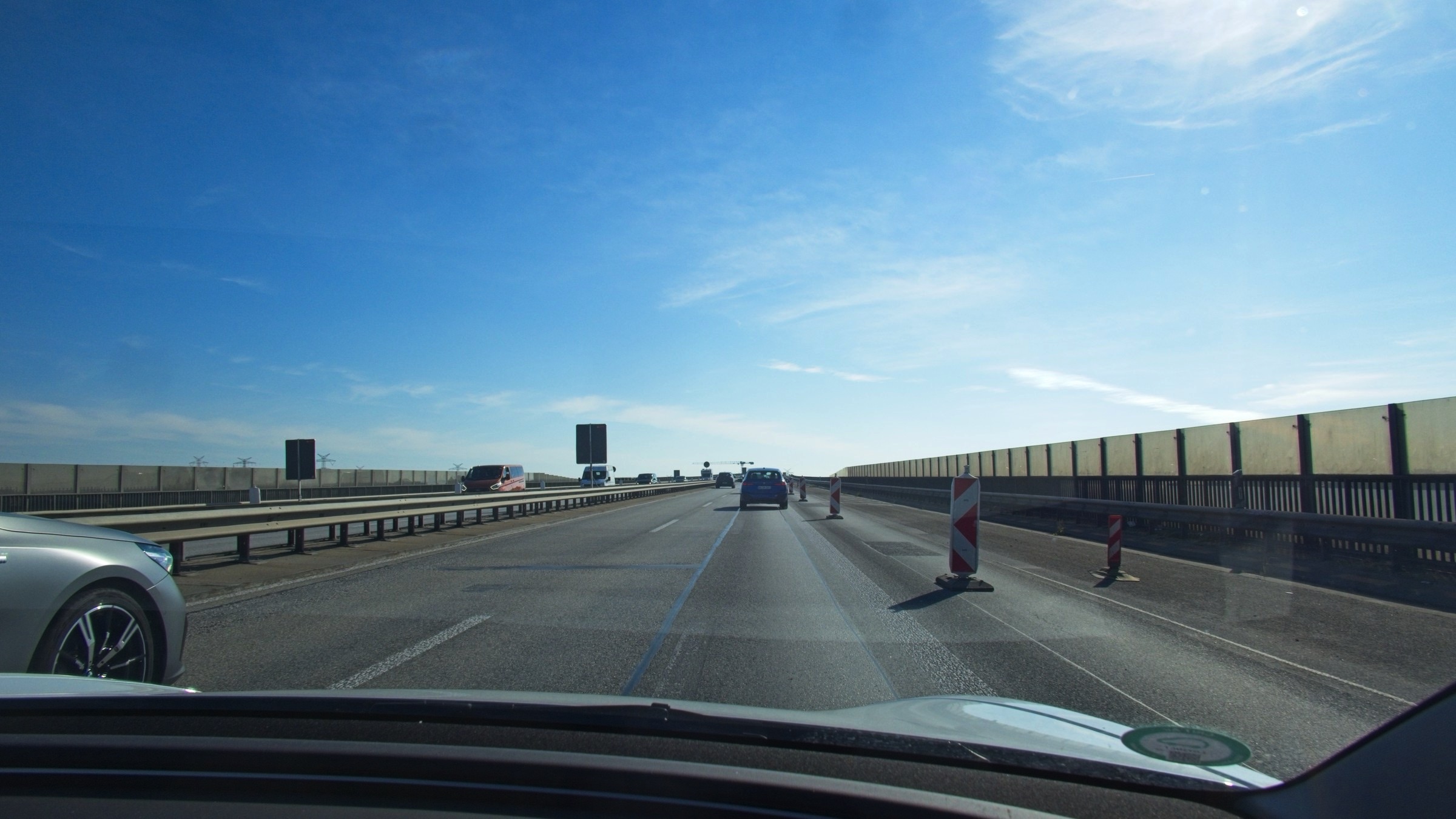 Coming out of the traffic jam in roadworks in Hamburg. The navigation system routed me around the first 2 km of the jam.