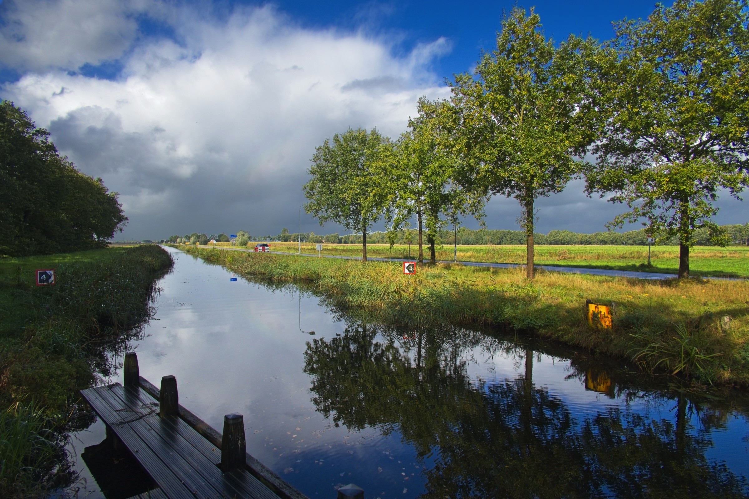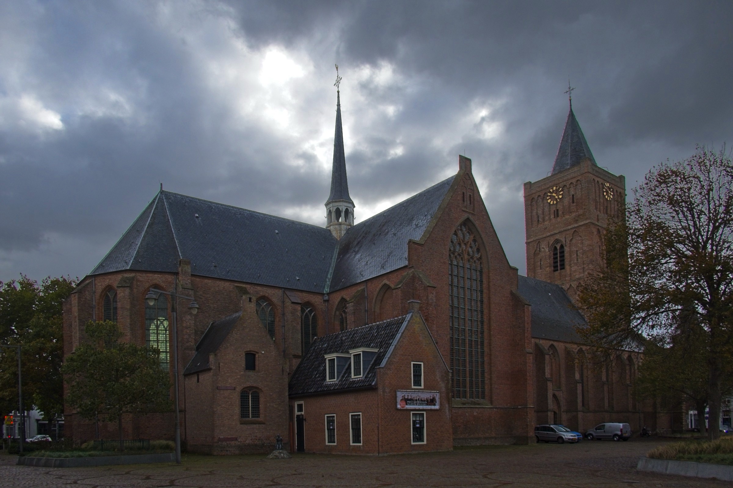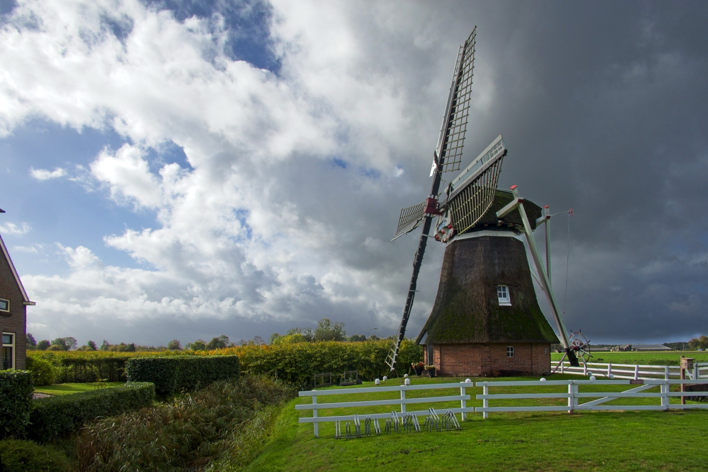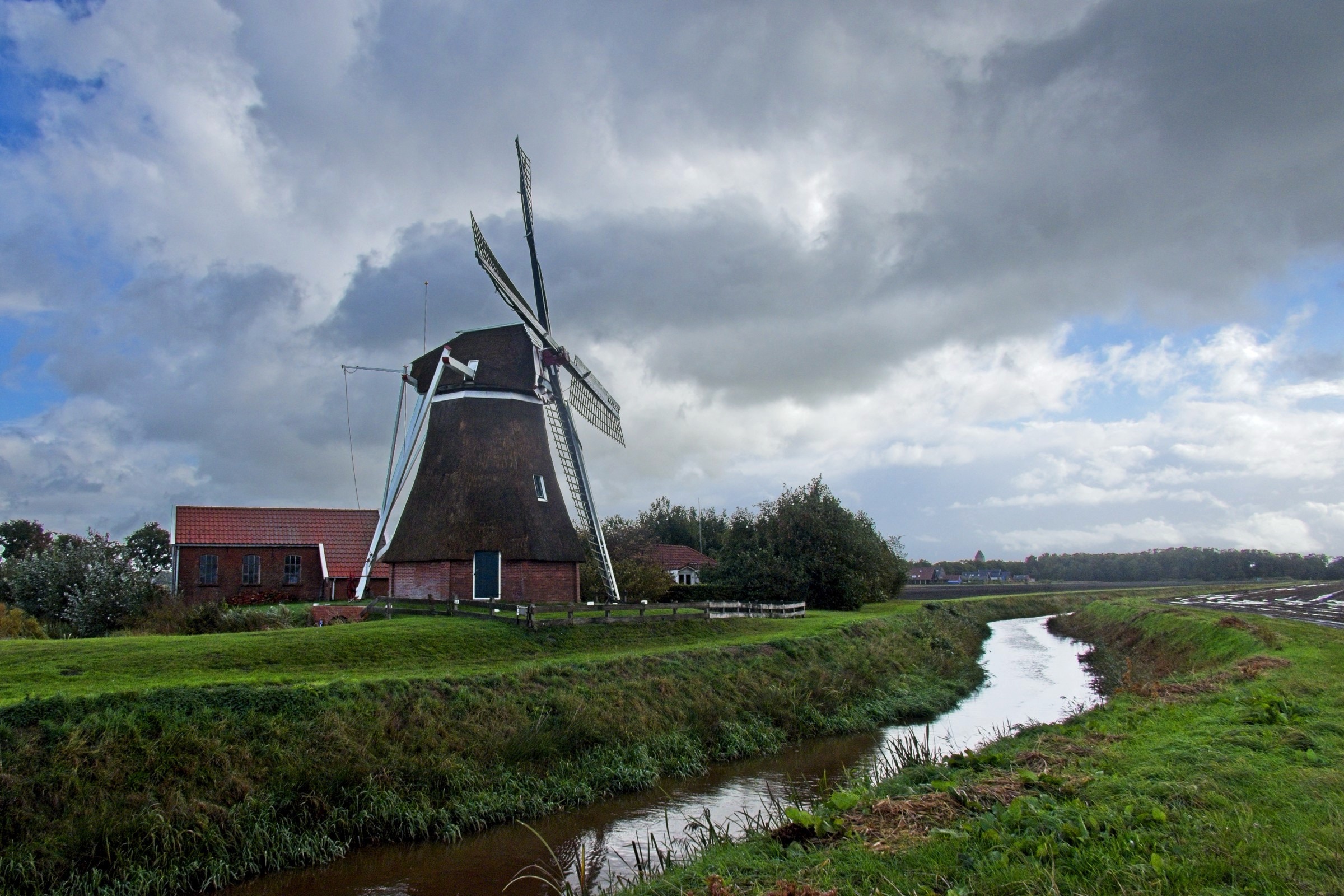 Gosh, what can I say. Talk about lucky with the weather. If today’s weather had been anywhere important to the trip it would have been a wash out. I think we are getting a taste of Amy! It started very, very wet from Bremen to the Dutch border and from there two things changed. We got occasional sunny periods and the wind built and built until I nearly got blown over in Noordwyk. It was just under 300 miles and with all day and a bit of evening it did allow a couple of diversions for a little sight seeing. The route was taking me by Groningen and after a check to see if it was worth a visit the answer was not really but lo and behold there are adjacent historic Poldenmolen. They are wind pumps used to manage water level on the polders. Windmills to you and I. There were three within a couple of kilometres and I even saw the first one briefly in sunshine. The other diversion was to Noordwyk where I have spent a few evenings at the Het Hot Van Holland, a restaurant with rooms while visiting ESTEC the European Space Agency Technical centre including once to present a paper at an international conference. Visiting there was strange as nothing seemed familiar. Memory fades and it was 25 years ago! On the road I had a couple of musical moments. Not far out of Bremen the road conditions were atrocious which did not seem to deter the drivers of large, mainly German cars from flying along the Autobahn. Bruce Springsteen’s “wreck on the highway” was playing on my music when one of the speedsters nearly replicated the song. A car some way ahead indicated and pulled out to overtake a truck. The speedster flew by me and did not seem to slow down. Suddenly the anchors were on as he closed to what from my range seemed a couple of metres from the back of the overtaking car. As I reached and overtook the truck the BMW was long gone back up to speed. The other moment was a little surreal. One of my favourite all time songs is Cyndi Lauper’s “Sally’s Pigeons”. I don’t really completely get the story but it always makes me melancholy and think back on my childhood. This morning it brought a long buried memory to life. We lived in Elgin Place in Edinburgh and the flat looked over a railway line. My dad had a large chest with a domed top by a window and I remembered sitting on it with Marion Brown who was in my class at primary school watching the trains. The brain is a strange organ for sure and music certainly has the ability to move us. Anyway enough of this lets get on to the photos. The headline and a few below are of the Poldenmolen near Groningen and where they pump the water to. There is nothing usable from the stretch of road to the “Poort of Groningen” where I stopped for a coffee. There are a few on the road below and a photo that demonstrates I was definitely in Holland. I’ll finish with one of the churches and the Het Hof Van Holland in Noordwyk.