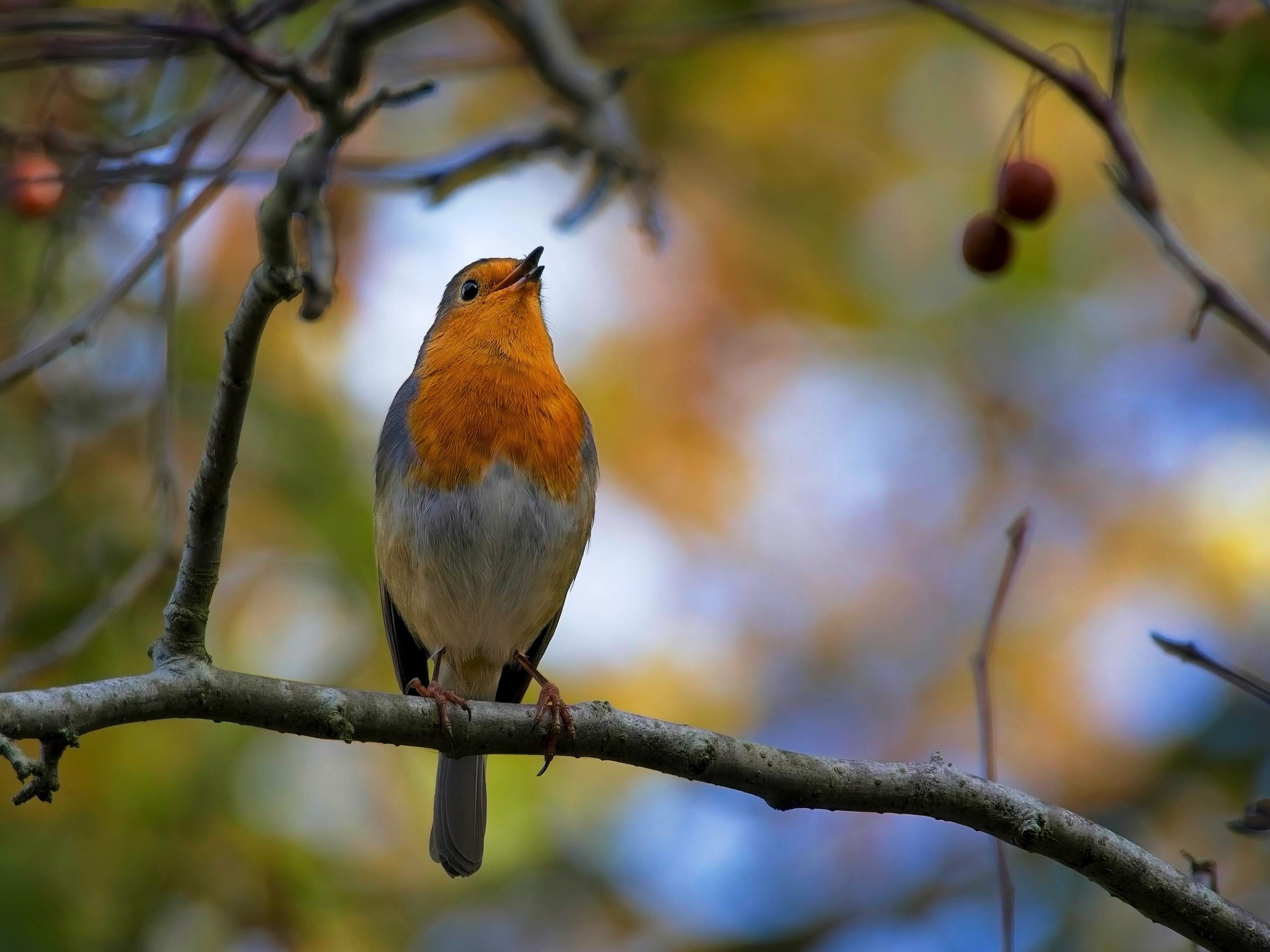 Here are a few pictures from local spots as the autumn colours start to fade. At Anglesey Abbey the little robin above was serenading the many visitors to this popular National Trust site. They try to create interest throughout the year and a world photography exhibit included some amazing photos. There was plenty of colour remaining as there was at the Swiss Garden earlier in the week where the peacocks were unusually visible. Along the Embankment in Bedford the trees have lost most of their leaves. There was plenty of colour in and around St Pauls church in the town with a fruit and veg market and an exhibition of beautiful moth and butterfly illustrations. As I walked around the sun was replaced by cloud but this created interesting light from the town bridge.