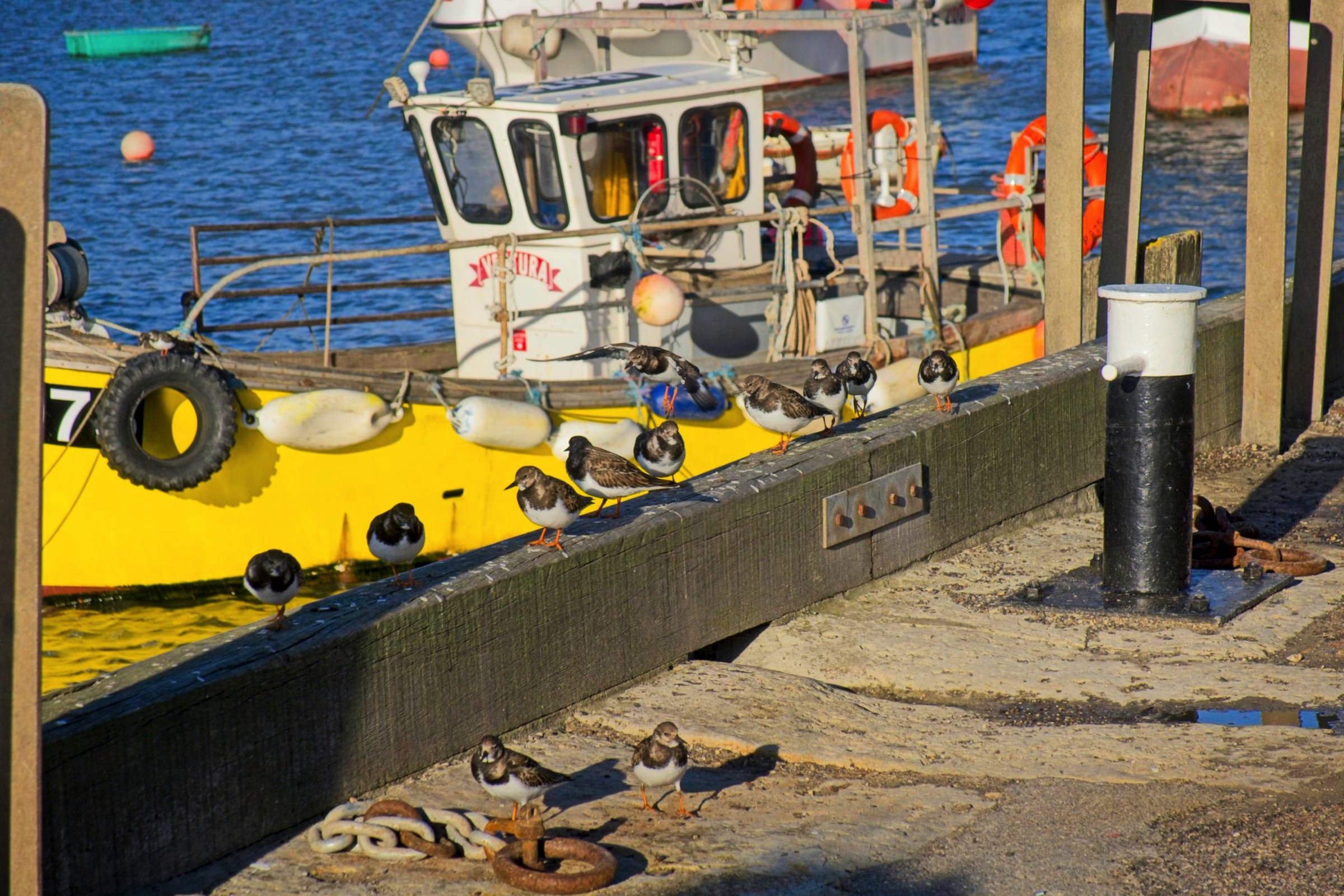 It was lovely to be in Dorset over the weekend with Helen, Paul and Alistair and they had booked some sunshine for Sunday, ideal for a visit to Lyme Regis and West Bay towards the end of the afternoon. On the Cobb at Lyme Regis there was a little flock of turnstones who seemed quite comfortable with people. Usually I only catch glimpses of them on rocky foreshores. Here is a selection from the coast starting at Lyne Regis with West Bay starting with the awesome but receding golden cliffs to the east.
