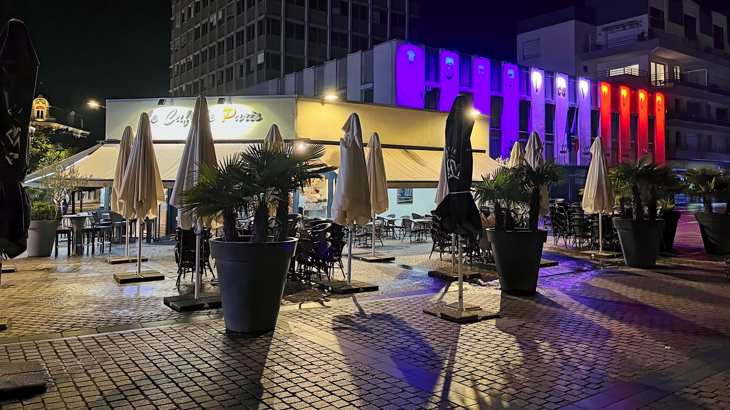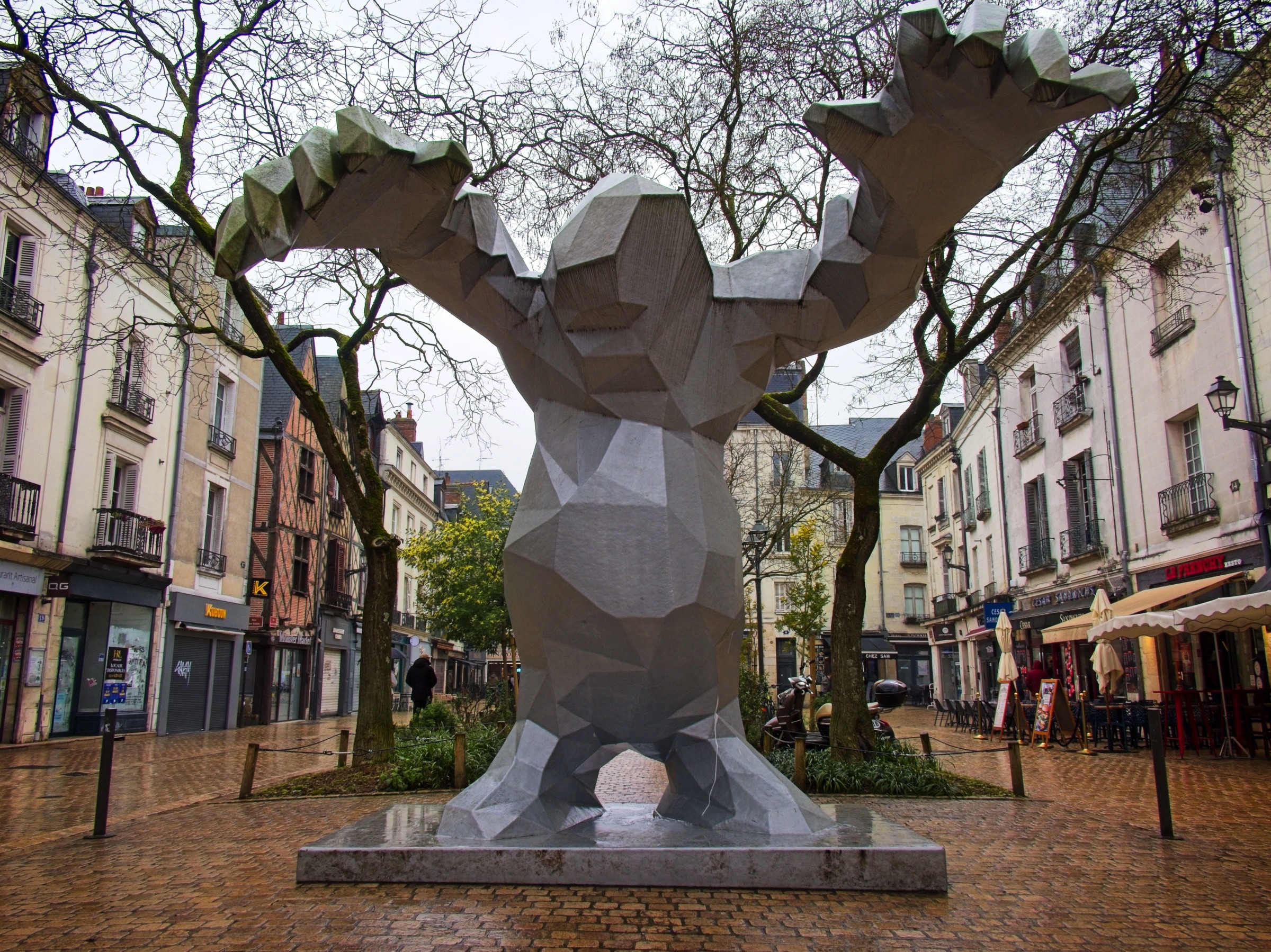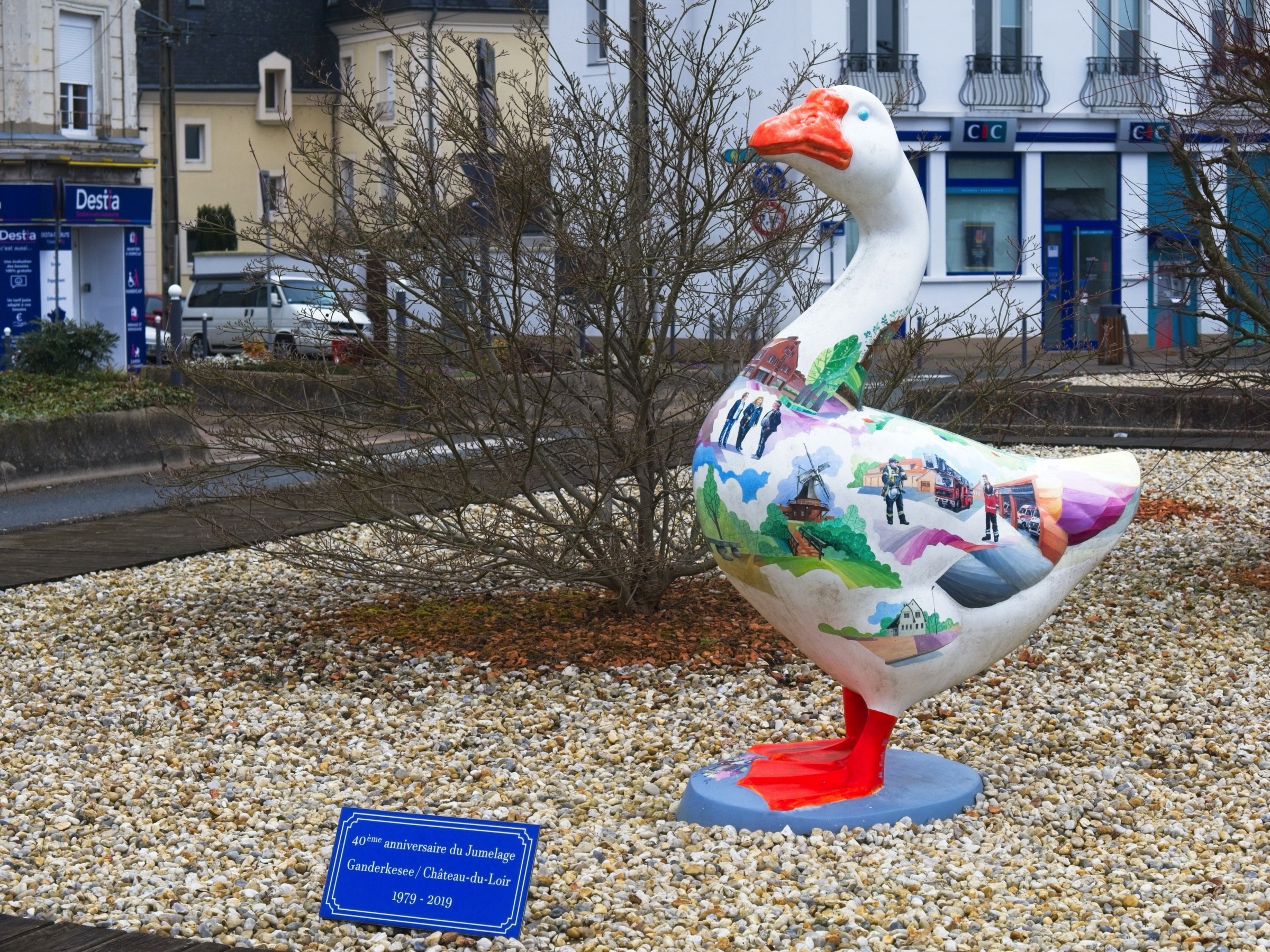 The day started bright and cold and as it progressed it became dark and cold. :-) A look at the weather radar at breakfast time showed rain and snow for the area around Chateauroux, my destination, but I try not to let the weather spoil my day. The plan was a sprint to the Loire at Tours with a quick charge at Le Mans before completing my journey to Chateauroux and that worked out well. I have visited many of the towns and chateaux on the Loire but only ever stopped to charge the car at Tours before so why not today. The river is running high but not flooded and it was getting a little help from the day with light rain as I wandered around the old town. It is nice if not spectacular but had a great boulangerie for lunch. I did stop briefly at the interestingly named Chateau-du-Loir. No chateau but a nice town hall and arrow straight main street. Here at Chateauroux I was glad to find a pub serving good food this evening and enjoyed a Salade Perigordine, with lots of duck bits as you would expect. Tasty and filling and not completely cold with nice crisp fried new potatoes. For reference the temperature essentially was below 4ºC all day and is currently 2ºC with a nice little shower of frozen rain for good measure. The hotel is nice and cosy. The first few pictures are from Tours. The Scottish word dreich sums up the conditions with a respite in St Martin’s Basilica. I’ve added a goose and straight street from Chateau-du-Loir, an interesting freighter aircraft at Chateauroux taken from the Tesla Supercharger location and the Cafe de Paris here in town. And just for those who like a little sunshine I will finish with a couple of snaps from Ouistreham this morning.