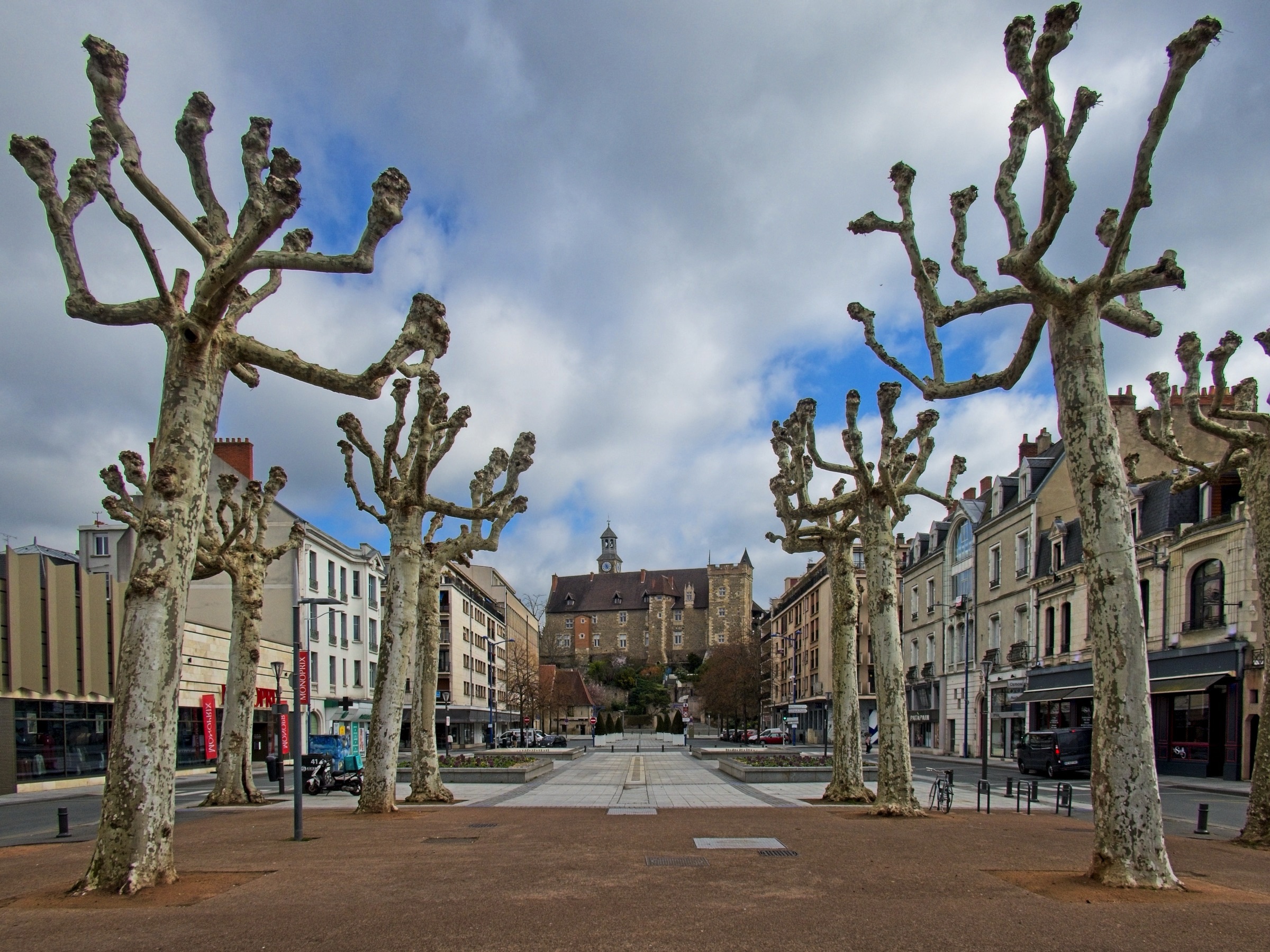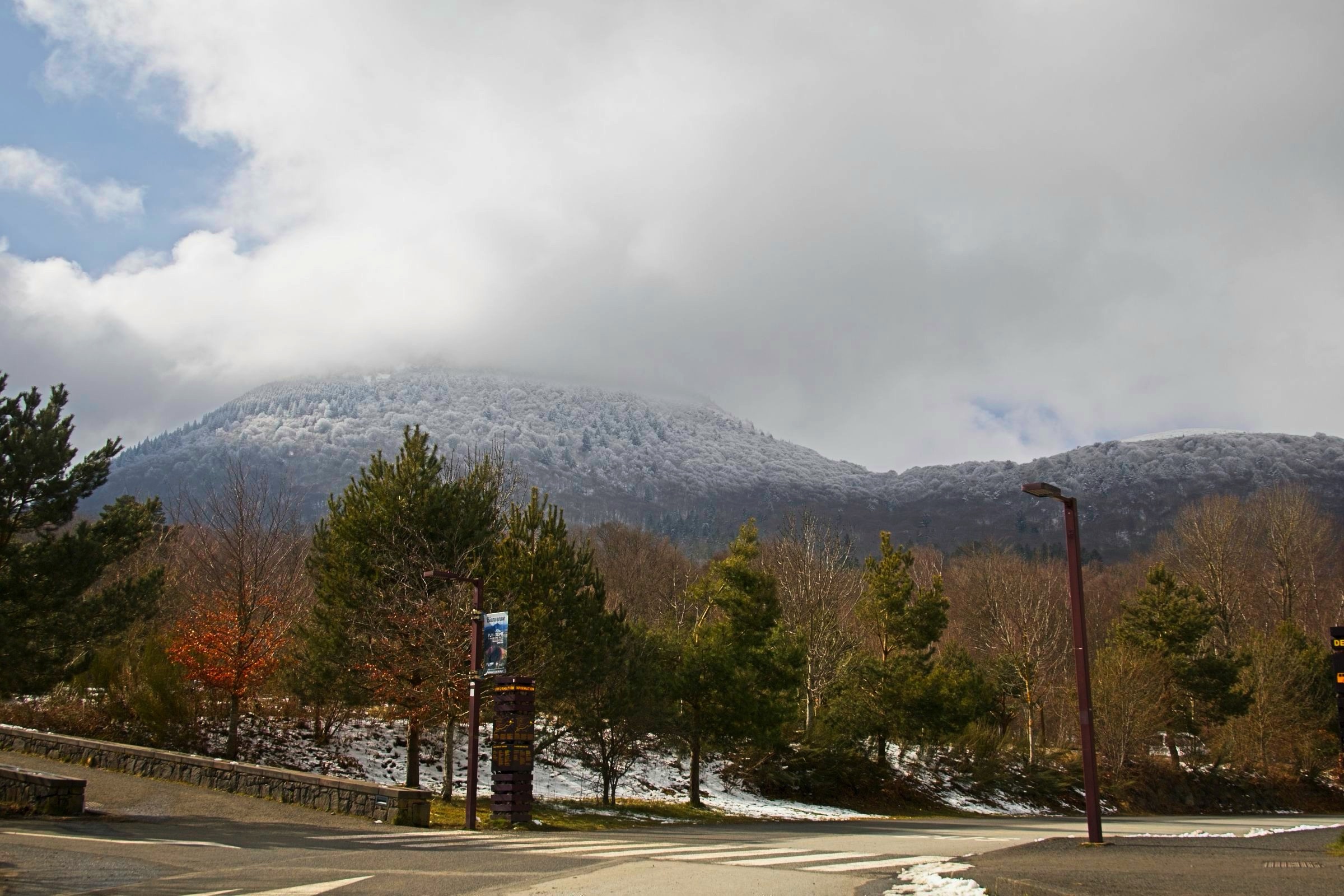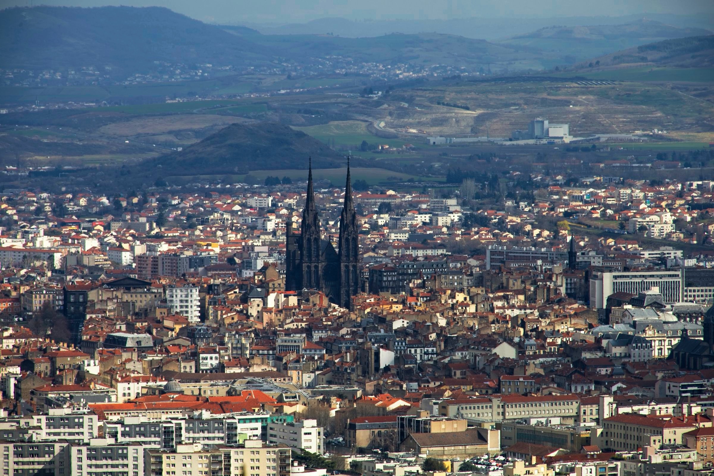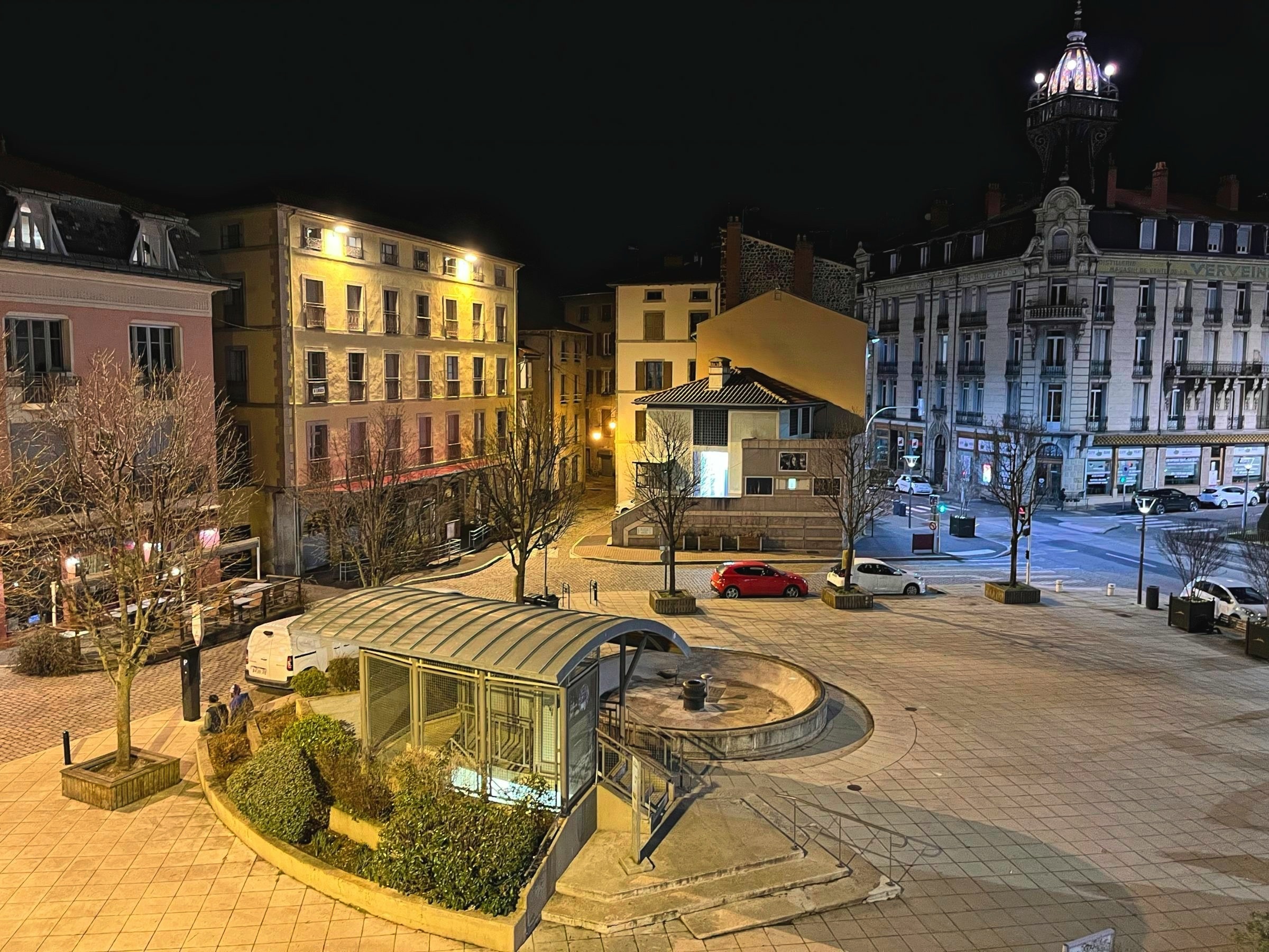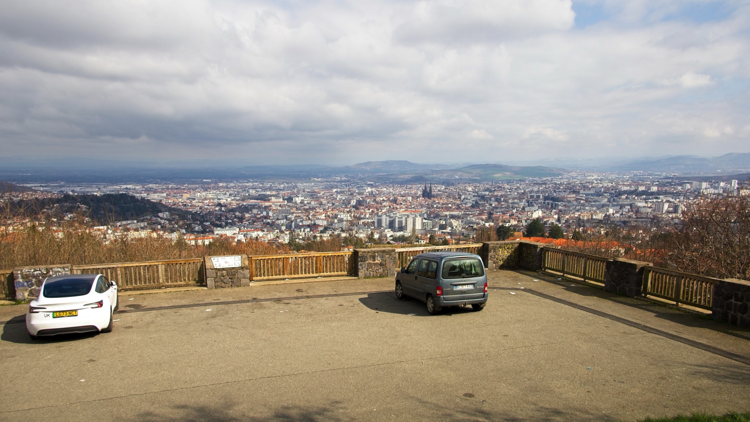No rain today just a little snow in the Massif Centrale. It has been a lovely day leaving the flat lands and heading up into the central mountains of the Auvergne. As I rolled south east from Chateauroux I stopped in a couple of towns on my way to Clermont Ferrand. My first stop was at a little town called Châteaumeillant. Typical of many small French towns there was a big church and some very old buildings but the treat was an old shop, 'Le P’tit Bazar Ricard’, with its iron awning over some intriguing windows as shown below. Note the panorama creates a distorted view as the shop front was not curved. Next was Montluçon an altogether larger place on the river Cher. There is a moderate sized medieval city in the heart of a modern university town with an impressive avenue leading away from the chateau. There are some interesting windows promoting a music museum which was actually closed when I passed. Worth a gentle stroll. It was then on to Clermont Ferrand for a charging stop and a coffee in the Novotel where the Superchargers are located. Before the fast run down to Le-Puy-en-Velay I took a loop out into the land of the volcanoes of the Auvergne including a stop at Puy-de-Dôme covered in snow. I did not make the hike to the summit as I had not the time but also the energy and the summit itself was in and out of snow showers. Le Puy is again in the mountains and is adorned with three (at least) volcanic cores which I will check out in the morning. The headline photo is Clermont Ferrand and the photos below follow the progress of the day. The Clermont Ferrand panorama and headline picture were taken at a vue point (Pierre Carrée) on the climb up to Puy-de-Dôme. I’ll finish with a couple of hotel room window photos. I opened the curtains at Chatearoux and the appartment opposite had an odd structure on the window pane whose purpose became clear when I got back from breakfast. Lucky cat. The final shot is here in Le Puy. The car park is under this square and it looked like I was lucky as the hotel has a couple of AC chargers. Sadly the charger would not talk to the car. Although a charge here would have been a bonus it is not a problem.