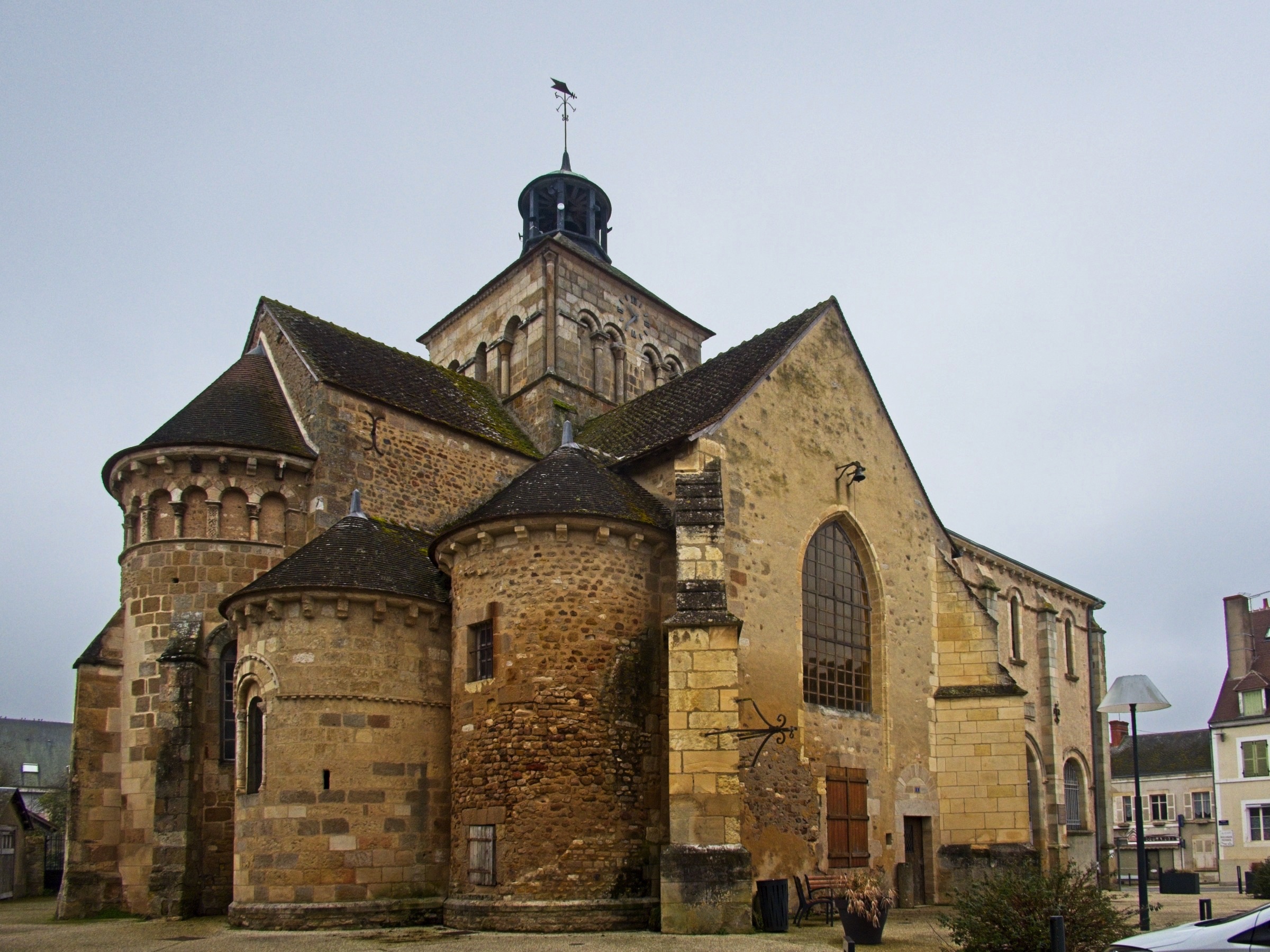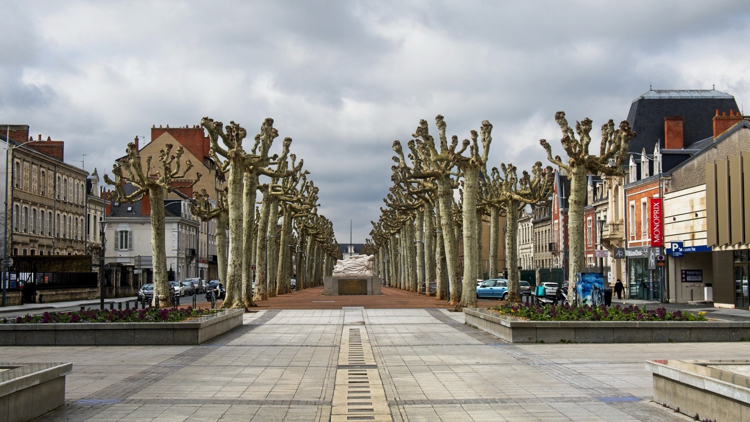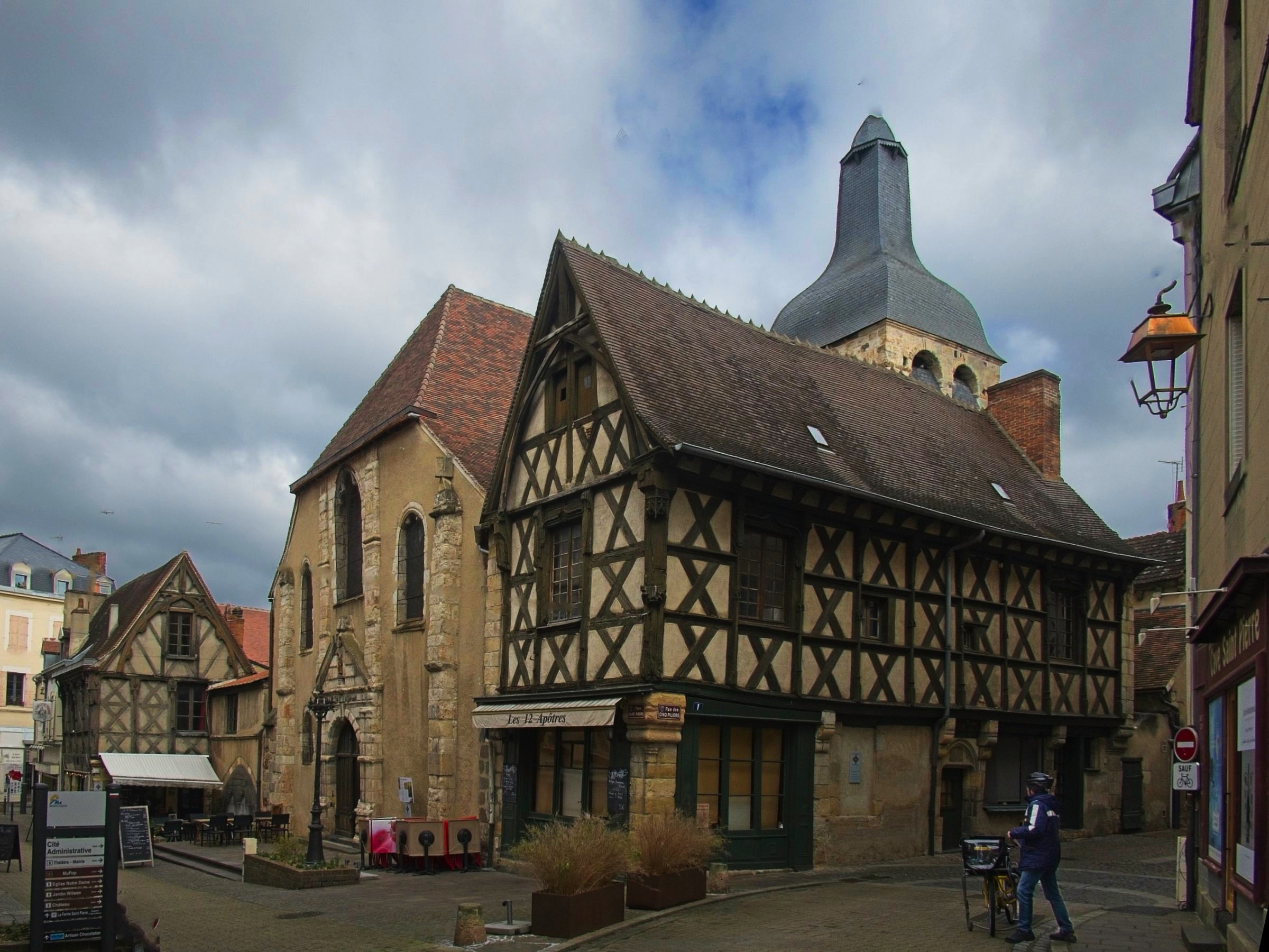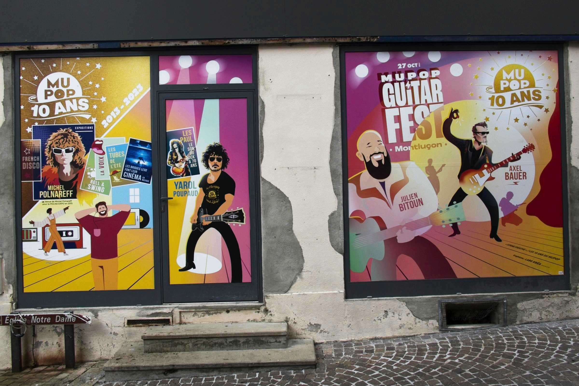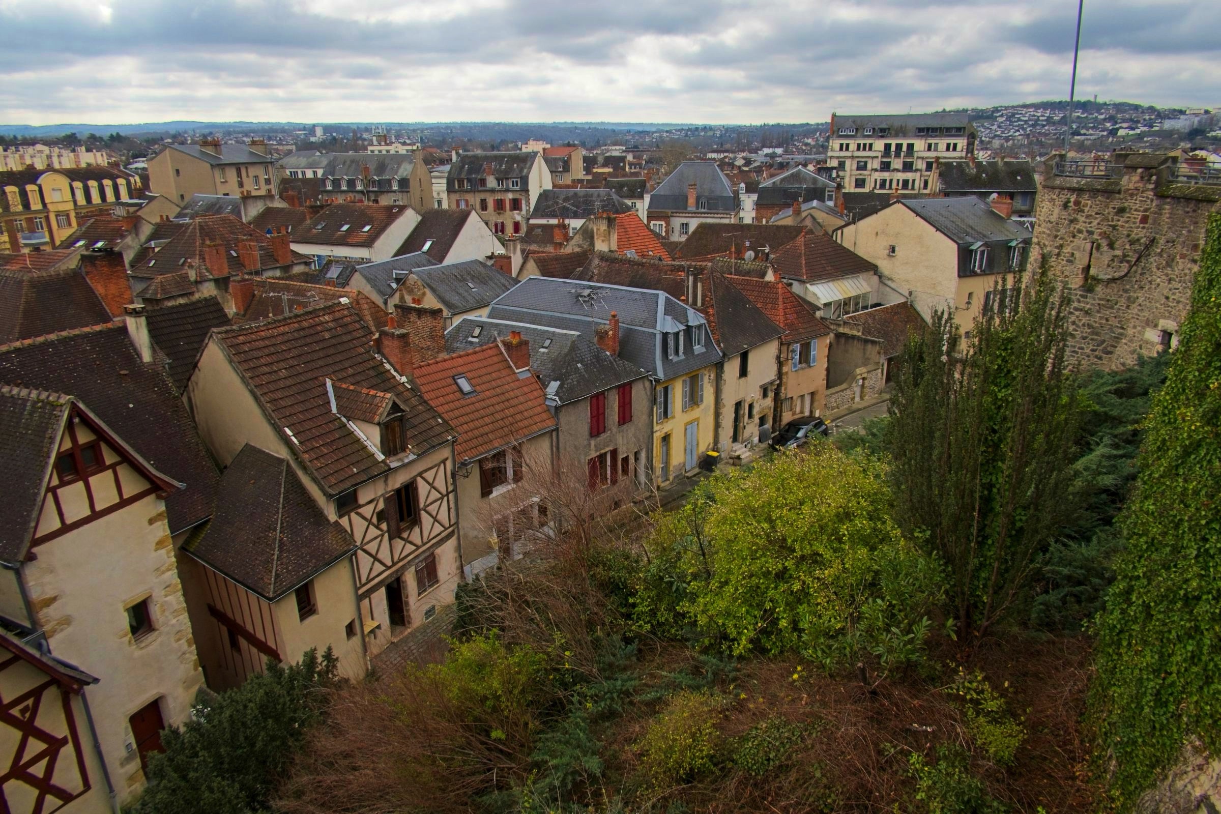 No rain today just a little snow in the Massif Centrale. It has been a lovely day leaving the flat lands and heading up into the central mountains of the Auvergne. As I rolled south east from Chateauroux I stopped in a couple of towns on my way to Clermont Ferrand. My first stop was at a little town called Châteaumeillant. Typical of many small French towns there was a big church and some very old buildings but the treat was an old shop, 'Le P’tit Bazar Ricard’, with its iron awning over some intriguing windows as shown below. Note the panorama creates a distorted view as the shop front was not curved. Next was Montluçon an altogether larger place on the river Cher. There is a moderate sized medieval city in the heart of a modern university town with an impressive avenue leading away from the chateau. There are some interesting windows promoting a music museum which was actually closed when I passed. Worth a gentle stroll. It was then on to Clermont Ferrand for a charging stop and a coffee in the Novotel where the Superchargers are located. Before the fast run down to Le-Puy-en-Velay I took a loop out into the land of the volcanoes of the Auvergne including a stop at Puy-de-Dôme covered in snow. I did not make the hike to the summit as I had not the time but also the energy and the summit itself was in and out of snow showers. Le Puy is again in the mountains and is adorned with three (at least) volcanic cores which I will check out in the morning. The headline photo is Clermont Ferrand and the photos below follow the progress of the day. The Clermont Ferrand panorama and headline picture were taken at a vue point (Pierre Carrée) on the climb up to Puy-de-Dôme. I’ll finish with a couple of hotel room window photos. I opened the curtains at Chatearoux and the appartment opposite had an odd structure on the window pane whose purpose became clear when I got back from breakfast. Lucky cat. The final shot is here in Le Puy. The car park is under this square and it looked like I was lucky as the hotel has a couple of AC chargers. Sadly the charger would not talk to the car. Although a charge here would have been a bonus it is not a problem.