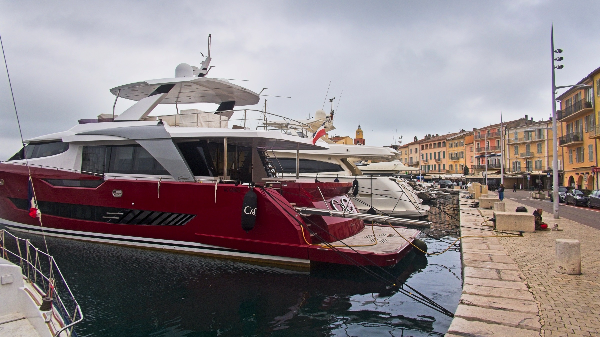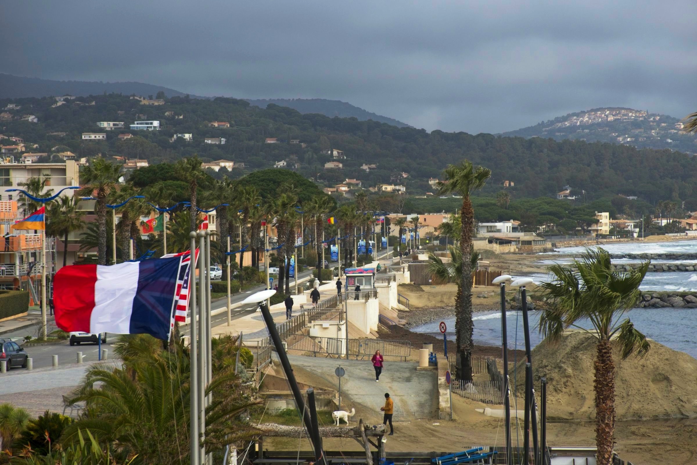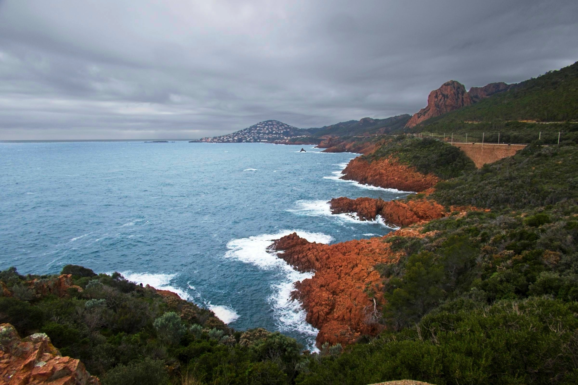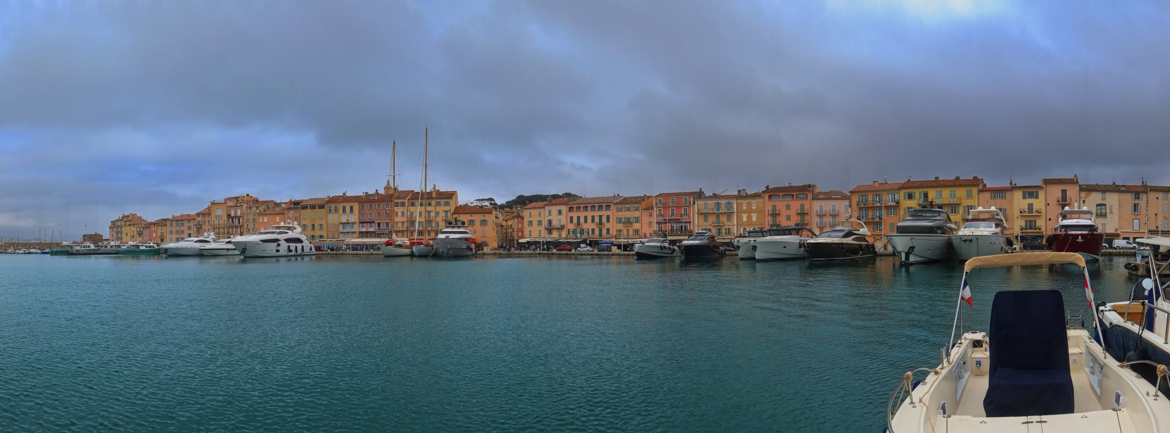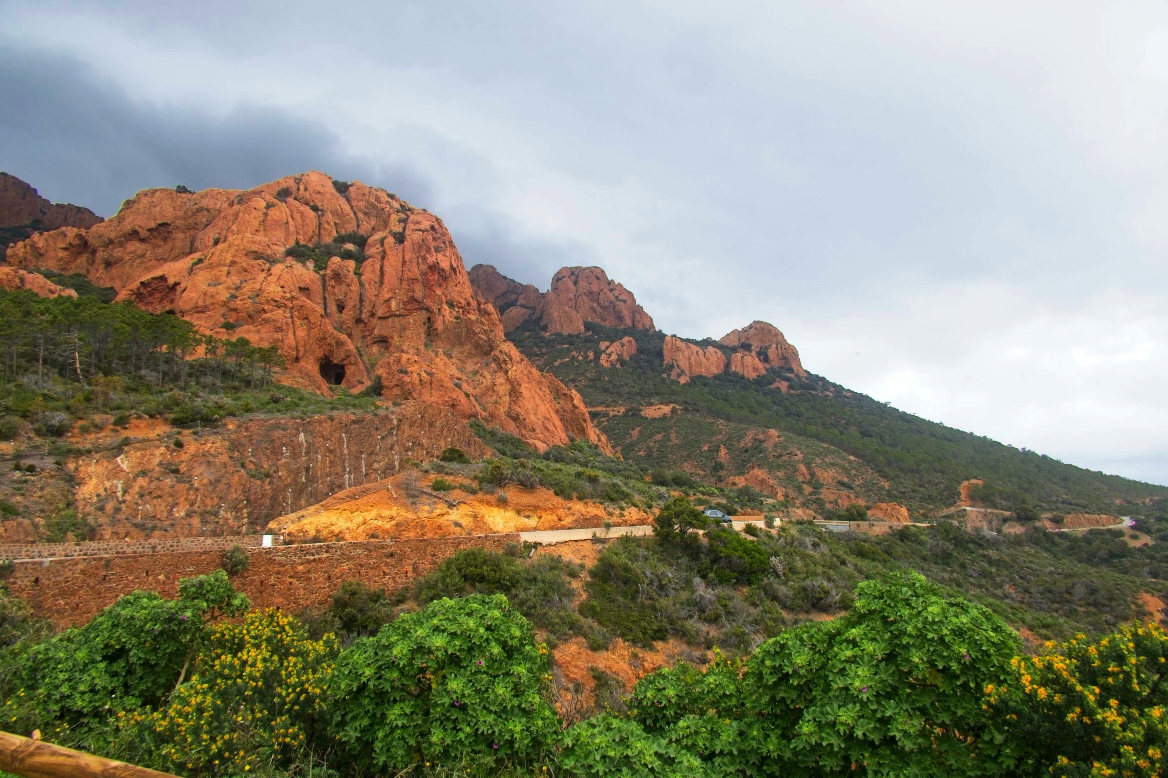 I am pleased to say the Mistral had lost some of its sting this morning and despite forecast of rain it stayed dry until I got damp walking back from dinner to my Hotel in the old Port in Nice. I was retracing some steps from 1971 with stops in Cavalaire-sur-Mer and Saint-Tropez. It has been a long wait to return and they have changed a bit. My first beer by the Med was sipped in September 1971 with three school friends, Eric, Kenny and Ronnie, and little did I know that it would set a pattern for leisure travel by car that holds to this day. Cavalaire was unfamiliar with lots of modern buldings and a splendid promenade, none of which I remember. I do remember a cold beer and a cooling breeze of the sea. The beach was undergoing maintenance. The port in Saint-Tropez on the other hand looks as I remember it although the yachts are bigger and there are more of them. A difference was a large car park attesting to the popularity of this one-time home of the likes of Brigitte Bardot. Along the coast I stopped in a little sunshine at Saint-Maxime before a climb into the Esteril Corniche for a touted view along the coast via Cannes to Nice. A rough forest trail climbs up through the red Esteril mountains but a little too much haze meant that Nice was just a light smudge on the horizon. Another stop along the coast produced some nice views of the red Esteril before topping up the car at a Tesla Supercharger in a retail park on the edge of Cannes. They know how to do it. I have seen a site like this before allowing 24 stalls in a compact area. Tricky if you don’t drive a Tesla through depending on where the charge port is. It was getting on a bit so I decided to take the peage to Nice saving over a half hour. The toll charge has not come through yet so no idea what the cost was. I am glad I did as I got snarled up close to the hotel when the traffic was being diverted to avoid a street protest. Lots of vehicles into a small detour is not a recipe for fast travel. The car provides detailed tracking and the last 2 km took 19 minutes. Not a real issue but one of the challenges in any major city on a weekend. The headline is a panorama of the port in Saint-Tropez. Below I’ll start in Cavalaire-sur-Mer before moving on to Saint-Tropez, Saint-Maxime and the Esteril crimson mountains, a Tesla Supercharger plaza and evening by the old port in Nice to round of a very pleasant drive down memory lane.