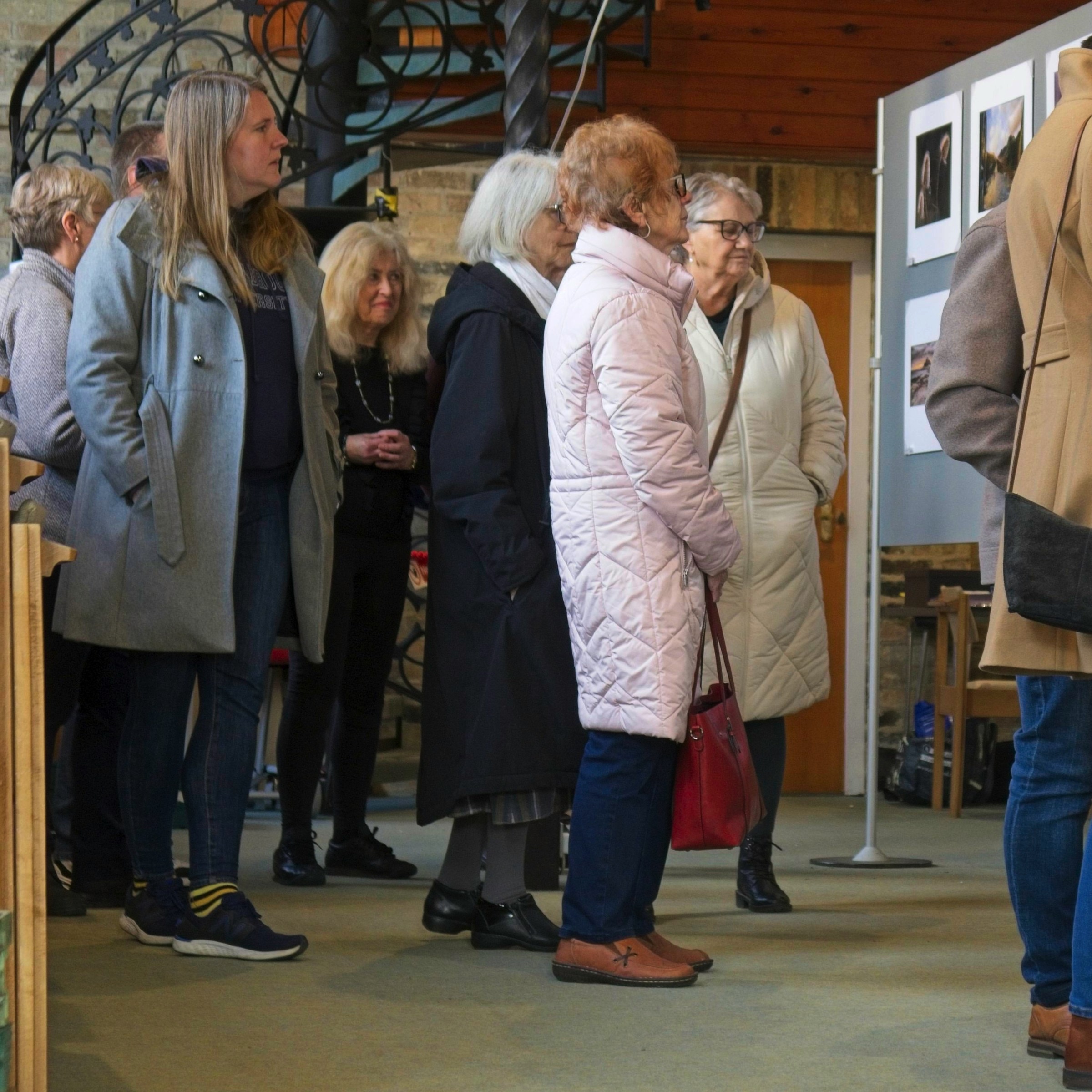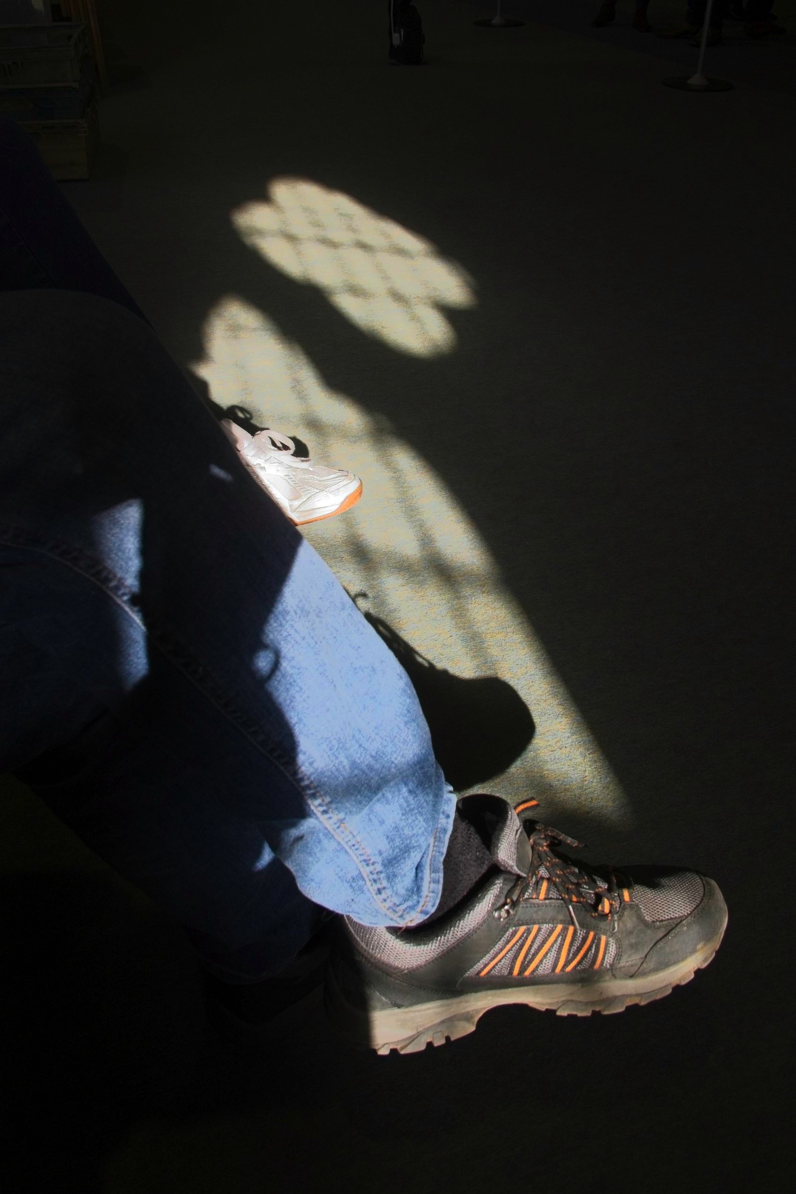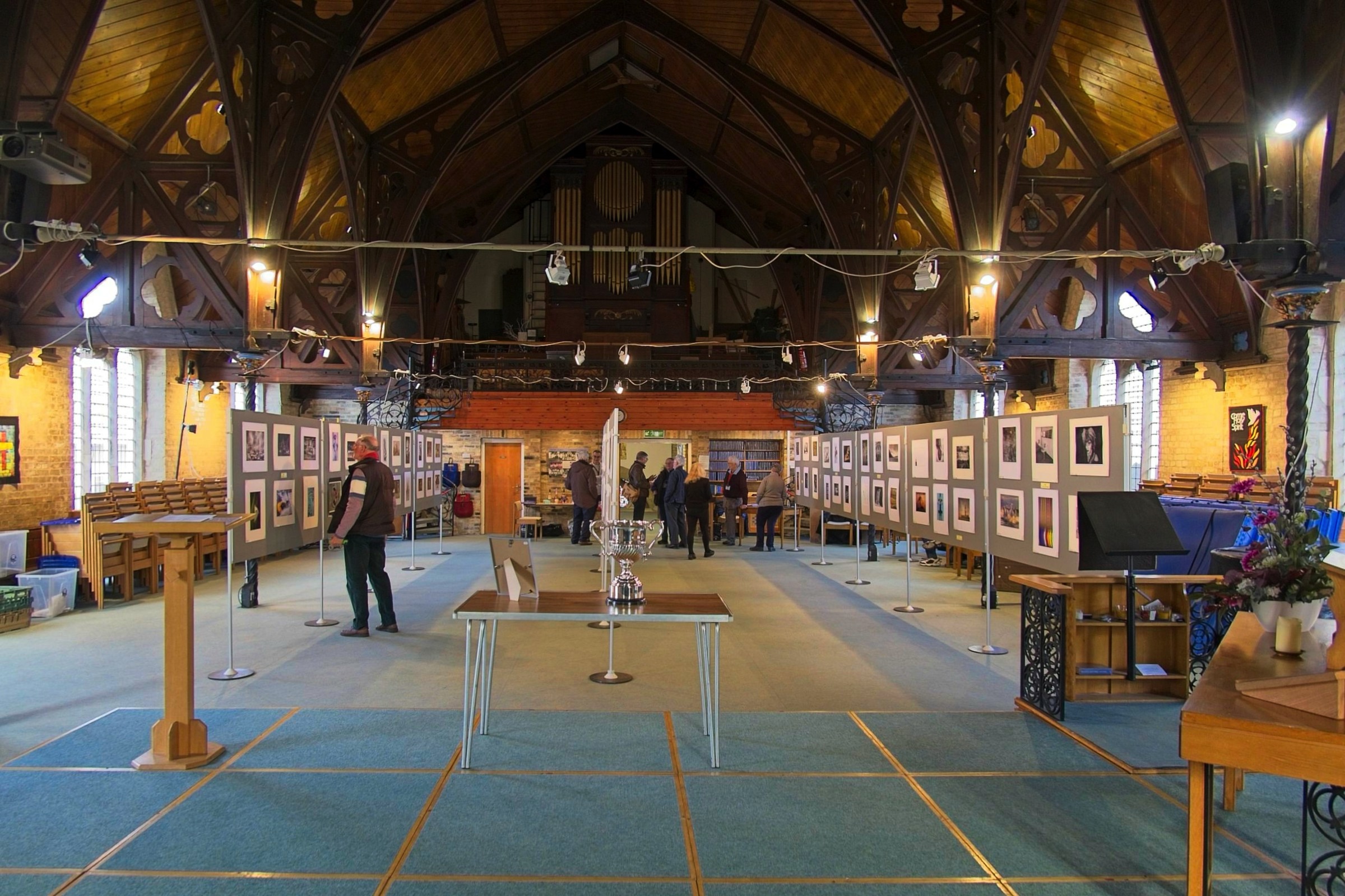 The anual photo exhibition at the Free Church in St Ives, Interprint, was on yesterday and, for the first time in a few years, I went along. On arrival, above, it was very quiet but the numbers built up as the afternoon progressed. It is always interesting to see what is on offer and there were some cracking photos on display including some excellent nature photos. It was not a lure for the youngsters who have forsaken actual cameras for phones. Capturing a diving kingfisher would be tricky to capture on my iPhone. In the church the lighting is not ideal for viewing prints but can create some nice patterns on the floor. The shoes are Paul’s and Ange’s. I park south of the town across the old town bridge and walk up. There has been quite a bit of rain so far this year but the usual flooding is subsiding on the meadows although the river is still showing considerable run-off.