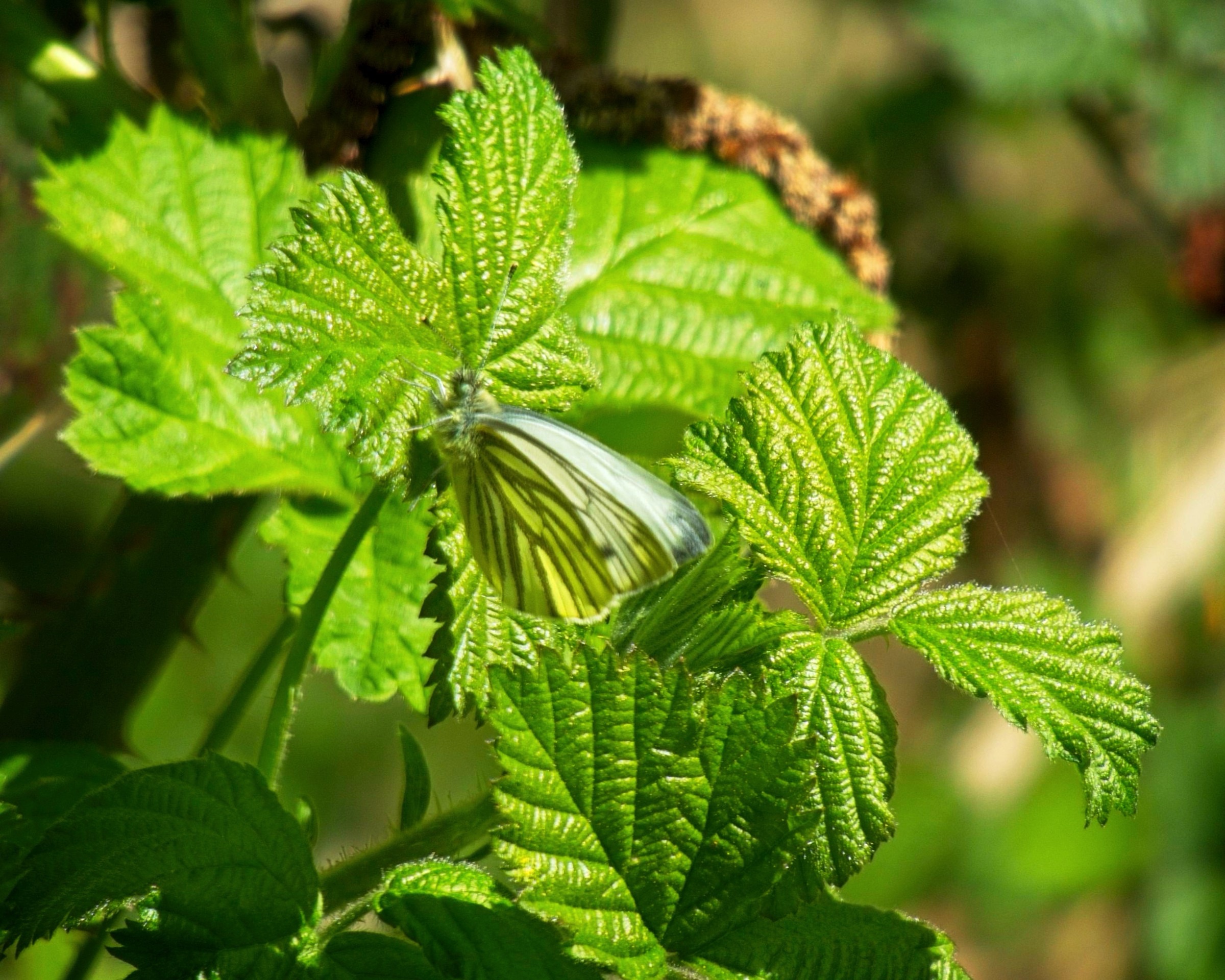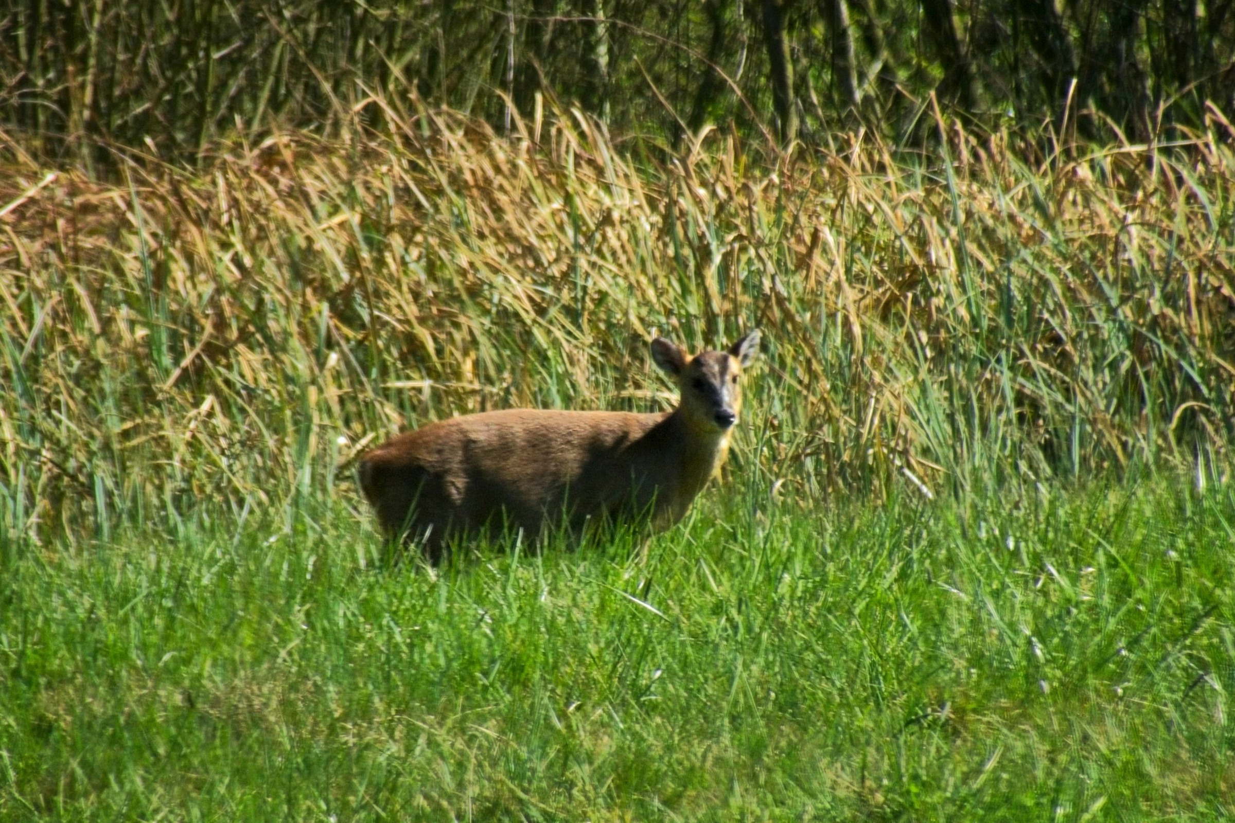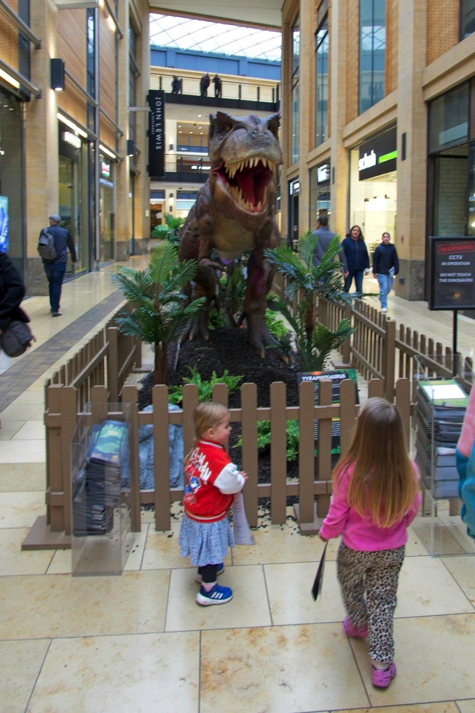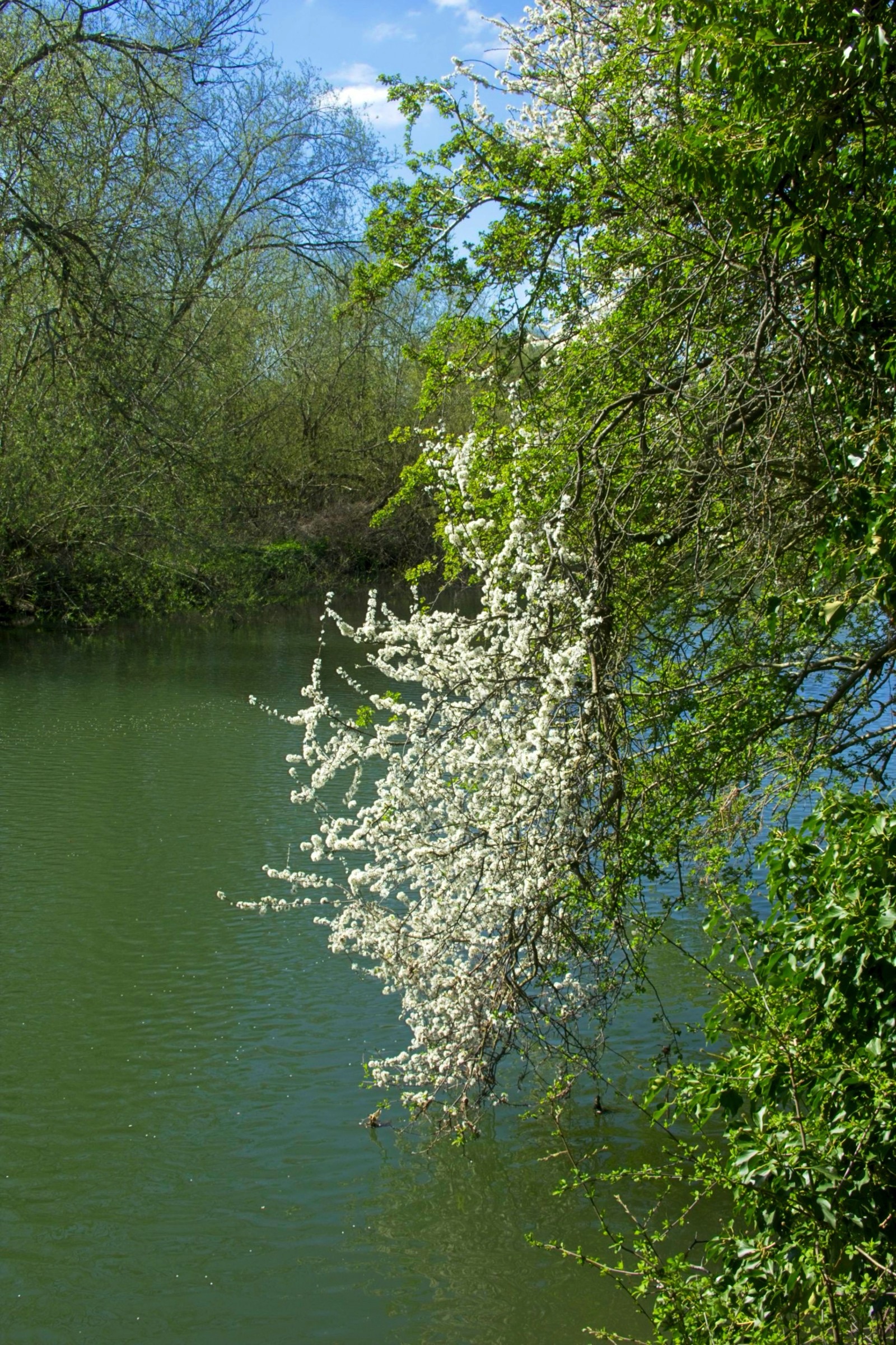 It has been a very pleasant week catching up around my local patch which was muddy and cold when I left for France and is now bone dry and a bit warmer. There is plenty of sunshine but I seem to have become the cold wind magnet. :-) I have popped around my local regular walking sites, the Lodge, Swiss Garden, St Neots Pocket Park, Paxton Pits and added a visit to Cambridge into the bargain. I’ll start with three photos from Paxton Pits where greenery is bursting out all over almost hiding the green-veined white butterfly below. A very casual muntjac was aware of me but appeared not to be fussed. The birches at the Lodge are coming into leaf and glowing. I managed to catch the last of the daffodils in the Swiss Garden. There is plenty of blossom about, including by the river in St Neots and the hire boats are back by the Rover Mill as the holiday season sets in. I’ll finish with a Jurassic shopping experience in the Grand Arcade in Cambridge. It definitely must be Easter school holidays.