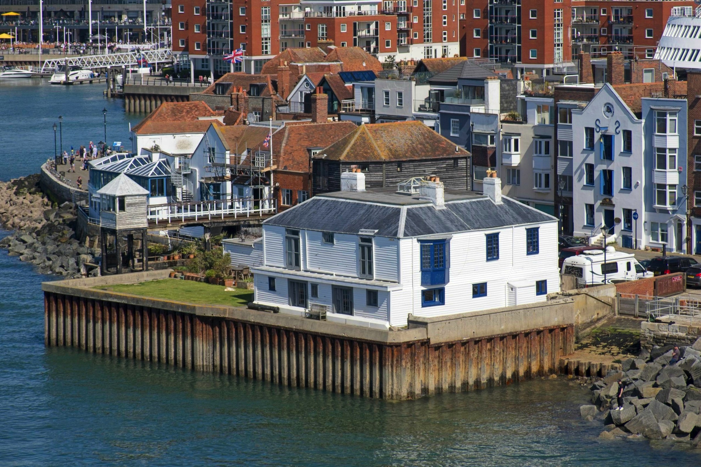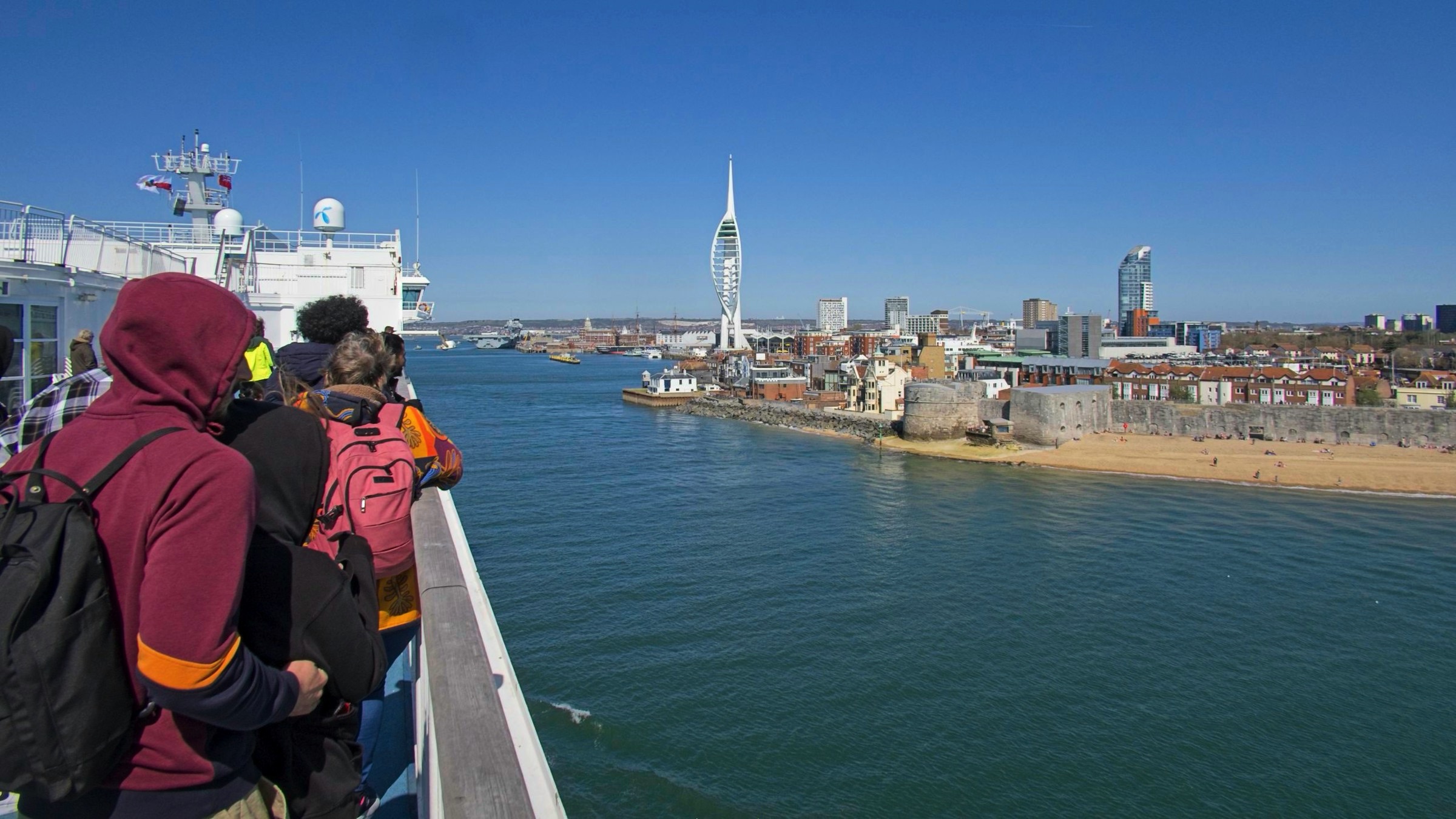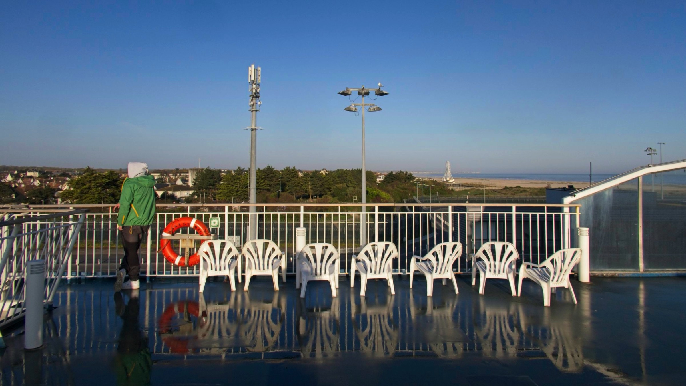 I find the ferry ride to and from Ouistreham (Caen) through Portsmouth to be a good way to visit France avoiding the most congested part of England and France. Although it is a 6 hour boat ride the price is competitive with the shorter crossings and a cabin is excellent value. It helps that there is an ibis Styles hotel right at thre entrance to the port adding convenience to this route arriving late evening on the way and departing after an early breakfast on the return. The journey on Saturday was a little choppy due to the wind direction and strength but the overal ride is smooth on these large vessels. The sun shone all day and here are some snaps from the trip including fine views while entering Portsmouth harbour. I’ll start with the post with walkers and gulls out in the early morning on the beach at Ouistreham. I had a little walk mid-crossing to grab a coffee and a pastry and checked the world on the aft deck. The combination of forward speed and wind almost blew me off my feet so I made a quick return to indoors. The run into Portsmouth is more interesting than to Ouistreham and I get to see it in the daylight. Nice!