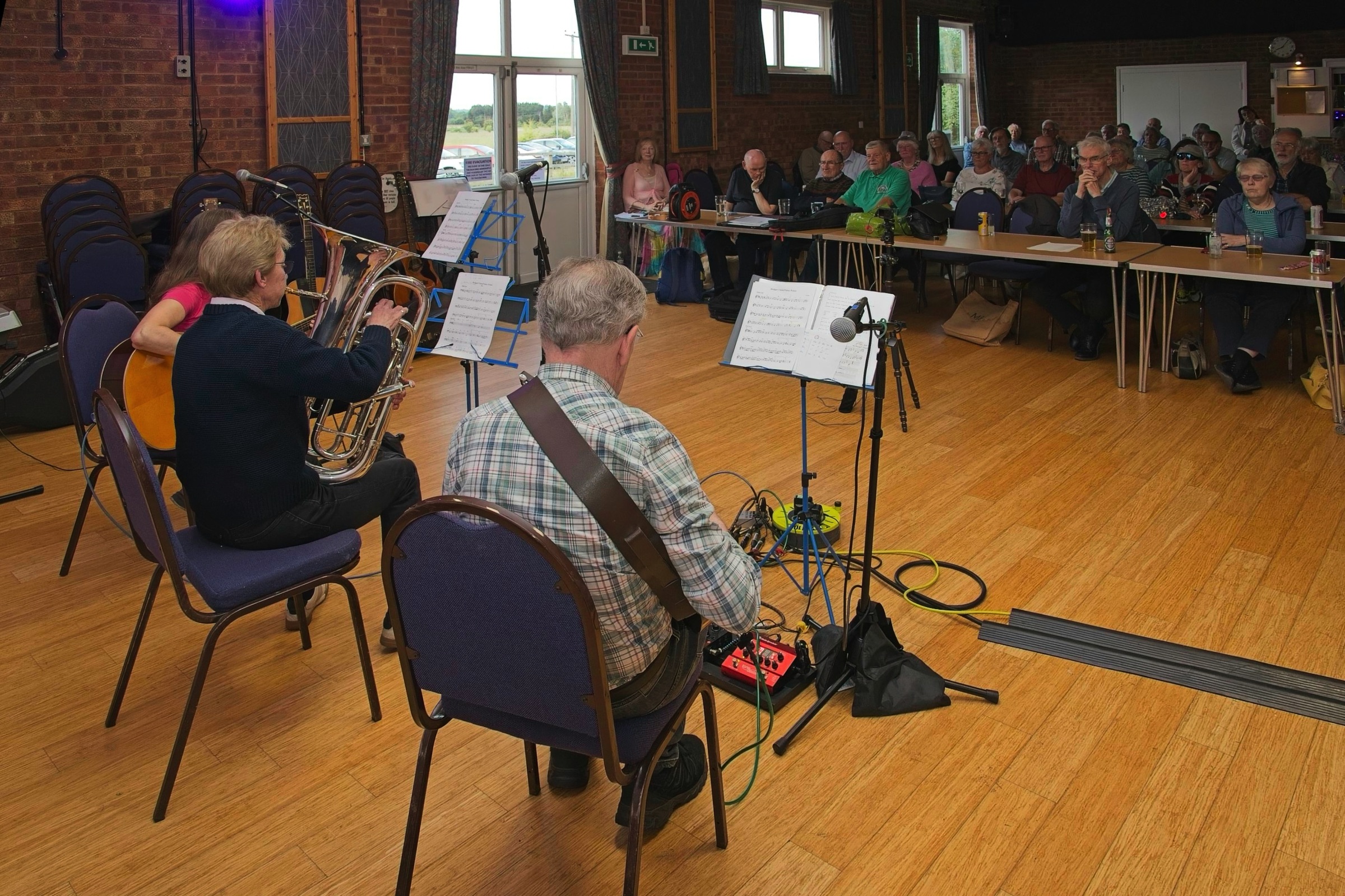 Another bunper crowd at Moggerhanger Village Hall for our monthly music session where they were treated to a wide musical range as usual.