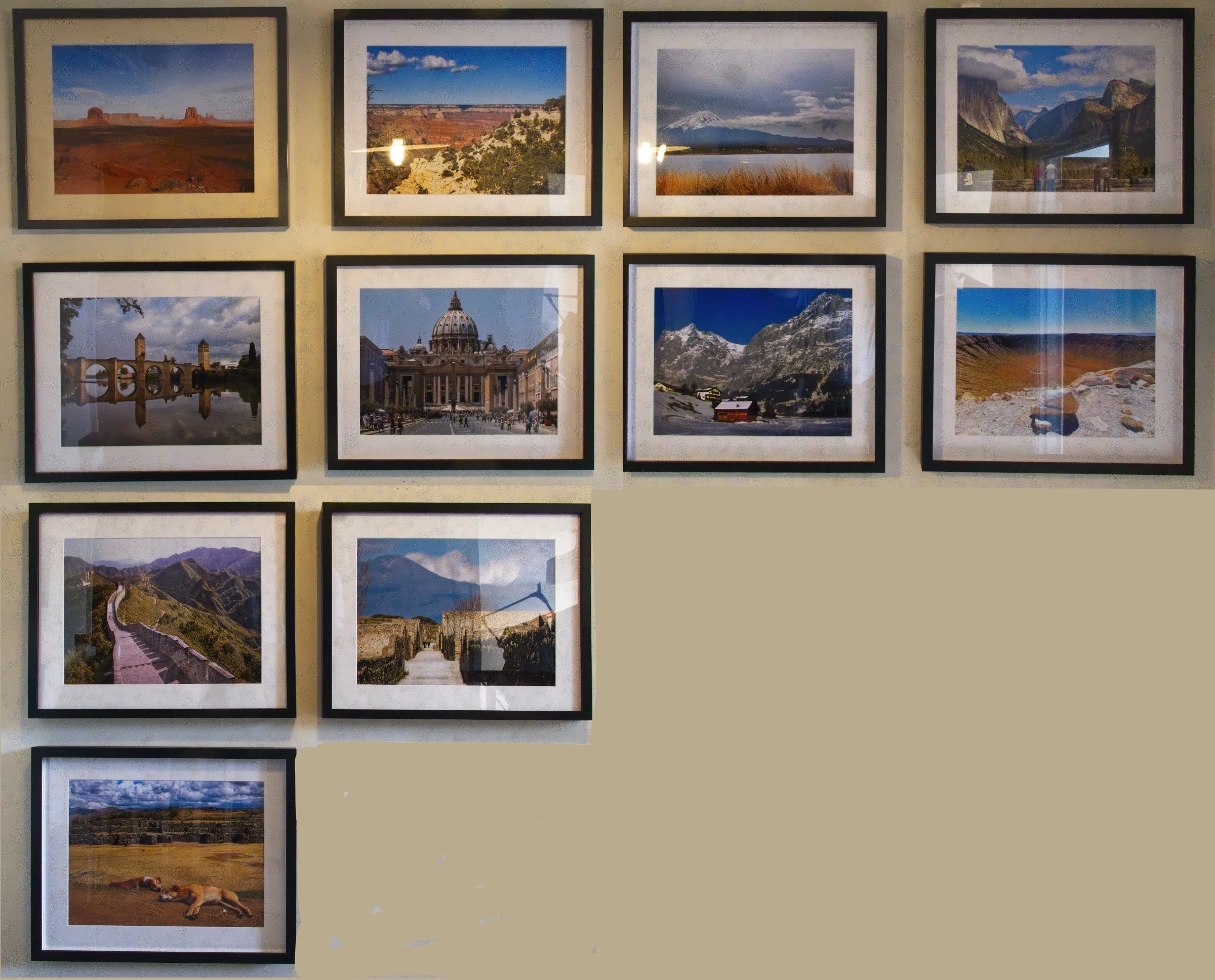 Gallery might be an exageration as it really is just the wall up the staircase to the upper level in the house. It is a decent area of hanging space which I have covetted for some time but with a dicky printer and no means of accessing the wall I have been patient. The stimulus came when I wanted to print posters and flyers for the Moggies Band Bedfringe show and actually broke the old Epson 1500 while trying to clean the heads. It turns out that it is too old to repair and I had already found you could not longer purchase Epson ink cartridges. In its place there is now a new ink tank printer form Epson, an ET18100, which provides the same, maybe better, print quality but at a vastly reduced consumables cost. Yipee! Then it was only the practicalities of access a tall wall without falling and a stair platform has done the job. The frames are very similar to frames I have used before from Ikea but subtly differently designed to mount on removable wall hooks, which work very well. No more picture hooks and wires, although I still had a few older frames which still required wire but could use the adhesive (removable) mounting hooks. Here are some of the new prints mainly on the ‘gallery’ wall but also other locations. The headline picture from 1988 at the observation roof of the World Trade Center South Tower is in the downstairs cloakroom. The first of the pictures after the poor quality gallery image actually sits below the main gallery. Each image is captioned as acurately as I can. The final picture is mounted on the wall perpedicular to the left end of the gallery