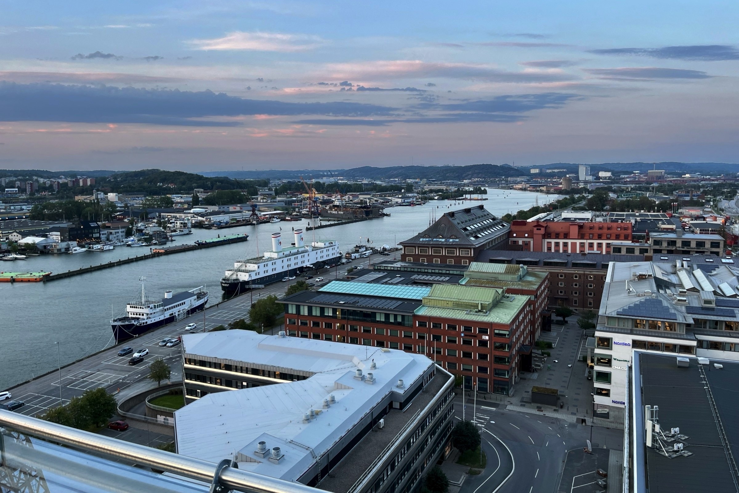 It was an interesting day starting with a hazy contre-jour crossing from Denmark to Sweden across the Oresund Bridge. I sort of collect bridges, a quaint habit, but as an engineer I appreciate the skill of the constructors but there are also historical references which attract me, like walking across the Brooklyn Bridge or indeed the Clifton Suspension Bridge or taking the train across the Forth Bridge. Of course there are the modern wonders like the Milau viaduct or the Ponte Vasco da Gama in Lisbon etc. Boring! Maybe? I often film as I drive with a GoPro mounted on the windscreen, as I did this morning, and I have edited into a short timelapse which you can find here. Even if the images are boring I hope you enjoy the music. I also found that taking the country route on empty roads has a downside. The upside is you see the countryside better than you do on the motorways. The other side of the coin is that on roads equivalent to our B roads the maximum speed is 70 kph (43 mph) and on A Roads 80 kph (50 mph). Most are B class and in this part of Sweden often flat and straight. My plan for the day was scuppered within a short time on the country road to Torekov which took over 1 1/4 hours to go 65 km (40 miles) with zero traffic. It was not a disaster but meant I dropped a couple of planned stops and even then I was an hour later arriving in Gothenburg just in time to hit the rush hour traffic. The places along the way were Landscrona to programme the car and take a little walk, then Torekov, both summer resorts and finally Morups Tange a nature area and classic lighthouse, before a stop for electricity in a deserted 22 stall Tesla Supercharger station. All in all I enjoyed the day coping with a gusty south easterly breeze. Here in Gothenburg the Scandic is titled Center. I am not sure what centre they are meaning as it is in a large building site by the river. It has excellent, and, as is normal, very expensive parking, a pleasant roof top restaurant above the 14th floor and a comfortable room so all good. So to some pictures. I mentioned Torekov which is where the headling picture was taken. There were some quaint cottages and nice views out to sea and there were only two places open, an ice cream shop and the public toilet. There was plenty of holiday accomodation and a marina full of pleasure craft. I imagine it is humming in the summer. Landscrona is also a holiday destination but on a larger scale with an empty skate park and olympic sized swimming pool, crazy putting course and a ‘golf’ course where even I might make a putt or two. There is a citadel, which from the aerial shots is impressive but not for today and an impressive, and I’m guessing, hotel on a point. Morups Tange was more my cup of tea. To get to it you had to open and close a gate. Bizarrely when I openned the gate and drove through a couple arrived behind me and gestured that they would close the gate. The bizarre aspect is we did it in reverse on the way out! I do not intend to make toilets a theme but there was a very cute one here and I did love it being there. I do like a lighthouse and the buildings, including the toilet, were sporting that deep cedar colour familier from the Swedish travel guides. The landscape had been pretty consistantly flat from getting of the ferry at Hook of Holland so no surprise there was a windmill nearby. I mentioned an empty Supercharger station and this is what it looks like. I’ll finish with three snaps from the hotel, from the lobby outside my room, from the roof top bar and from the window in my room.