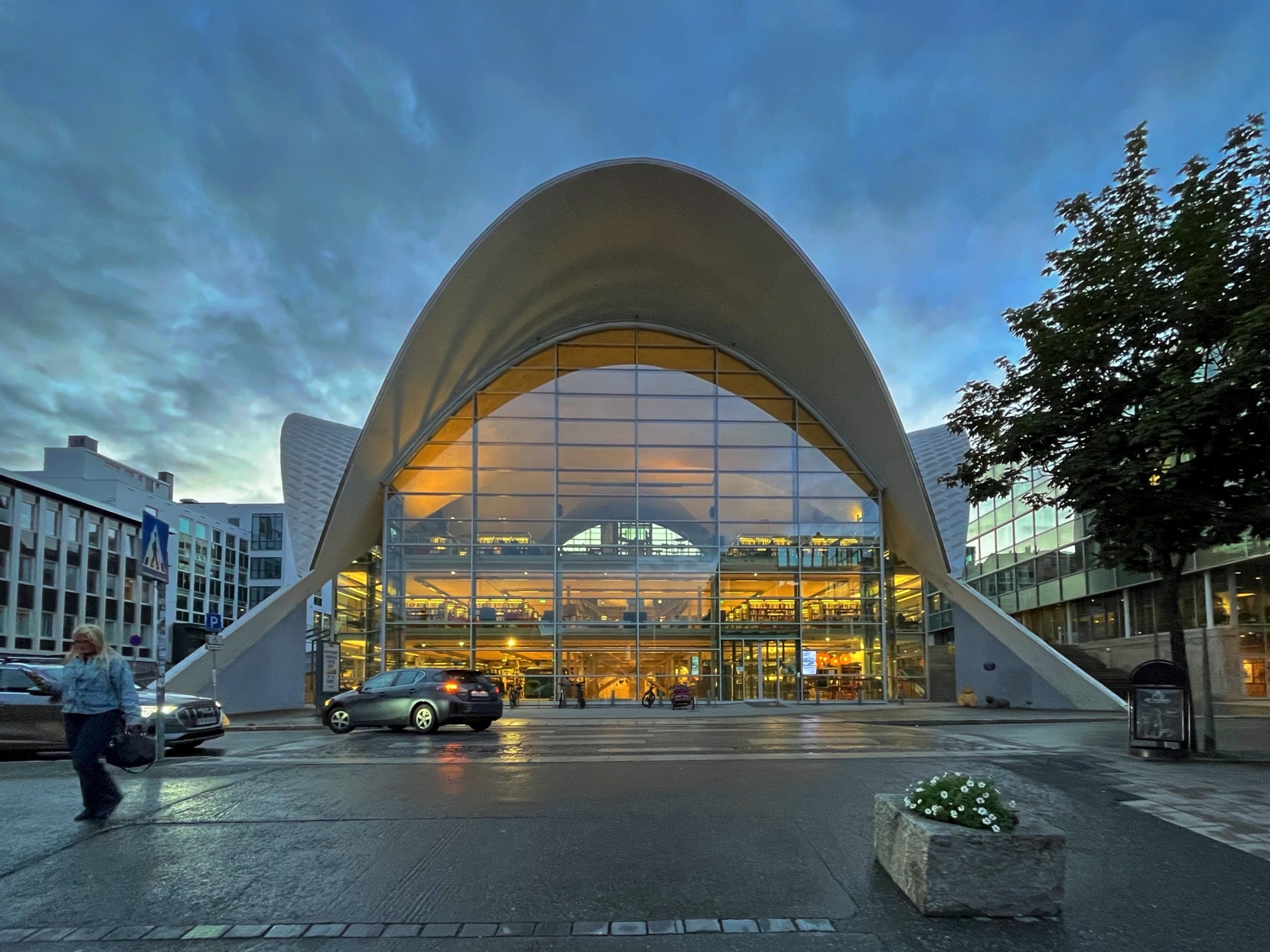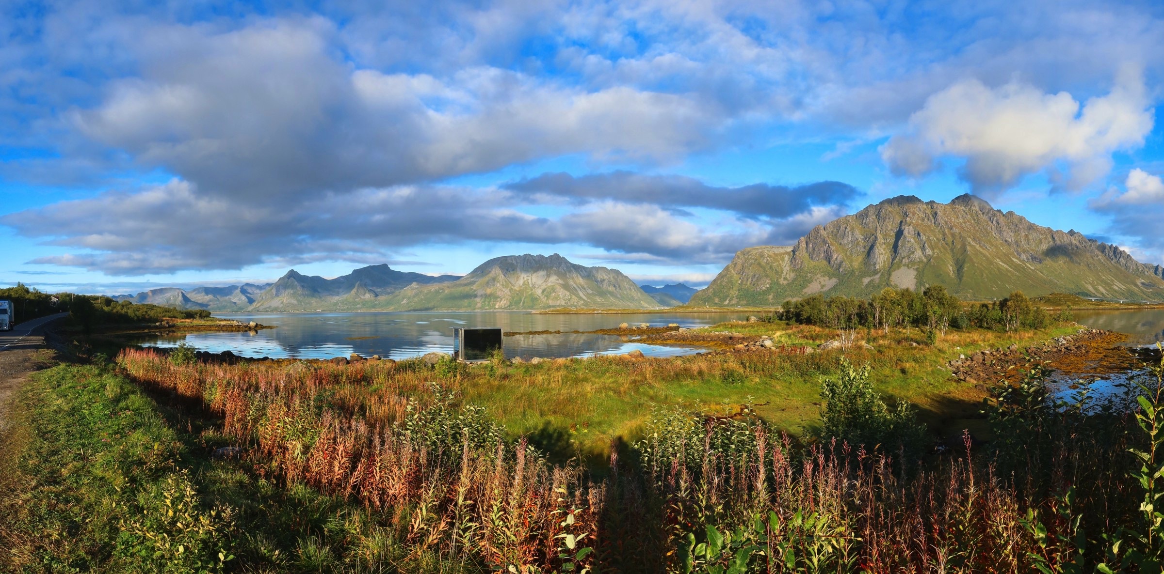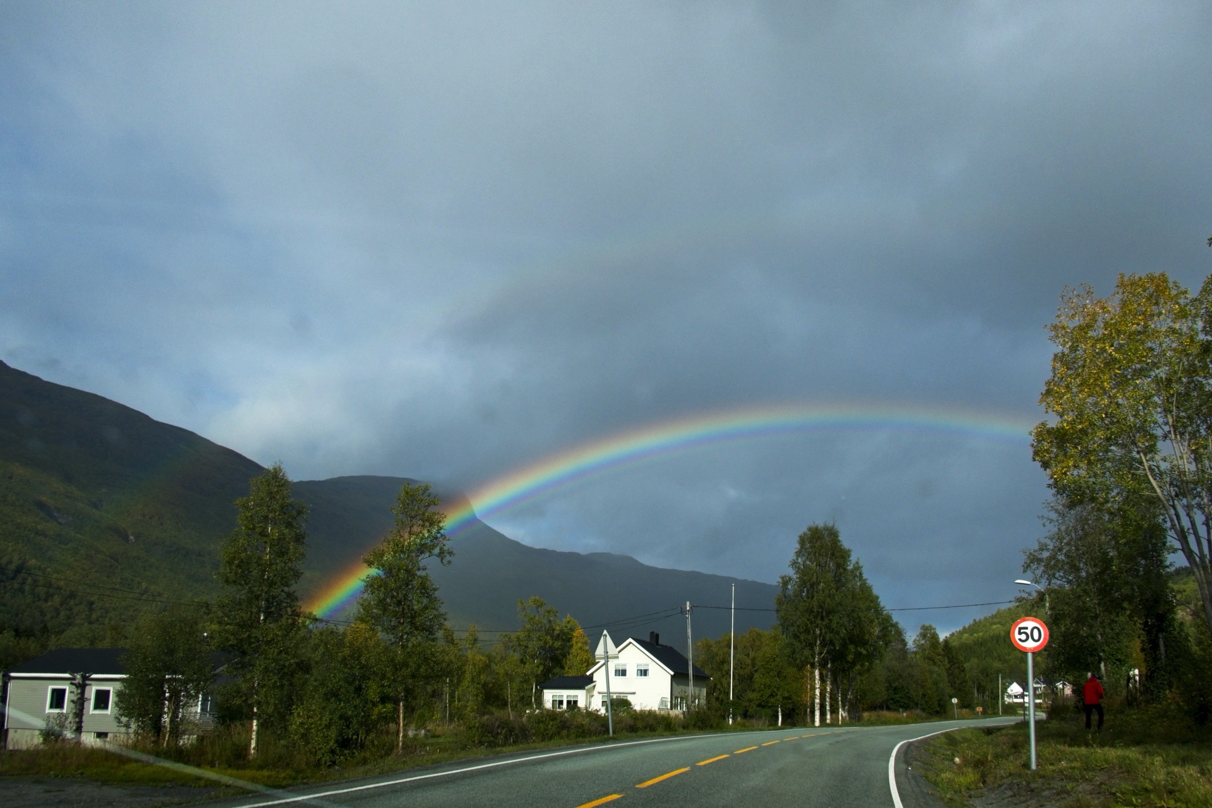 Today has been a driving day with 493 km to travel from Leknes on the Lofoten Islands to Tromso almost 70 degrees north and the furthest I will go on this trip. I generally avoid traveling along a road in both directions, at least for journeys of a decent length, but I had no option today. There is only one road on to the islands and therefore only one road back. In today’s case there was a silver lining. When I went to the islands the weather was awful with almost no oppotunity to see the scenery. That meant that my observation of the eastern islands was confined to the road itself and images of mist and rain. I have included some pictures of what I missed on Wednesday, like the headline image, and now I am pleased I had to return along the E10. I drove almost the complete journey from Wednesday to within walking distance of Narvik before heading north for another 216 km. I had the pleasure of realtively empty fast roads with occasional showers and a rainbow along the way. There were autumn colours to enjoy with the birch leaves turning and I can confirm I am now in the arctic. The air temperature ranged from 8 to 11C for the run north and the heating was on in the car for the first time on this trip. Here the hotel is in the centre of Tromso and I was directed to the adjacent parking. It is genuinely under ground in a series of tunnels and galleries and appears to stretch for miles. Probably an exaggeration! It is pretty clever this high in the arctic as it will limit the impact of ovenight cold on most vehicles. I think it is acually heated. Anyway here are a few pictures starting back on the Lofoten Islands, six including the headline image. You can compare the church to the more close up view from Wednesday. There is even a ship wreck and, a feature of the islands, crystal clear water. The next three are from the road north. The final four photos are here in Tromso, including the car park, rainbow over my dinner spot, an excellent bistro, the library across the street and downtown Tromso on a Friday night.