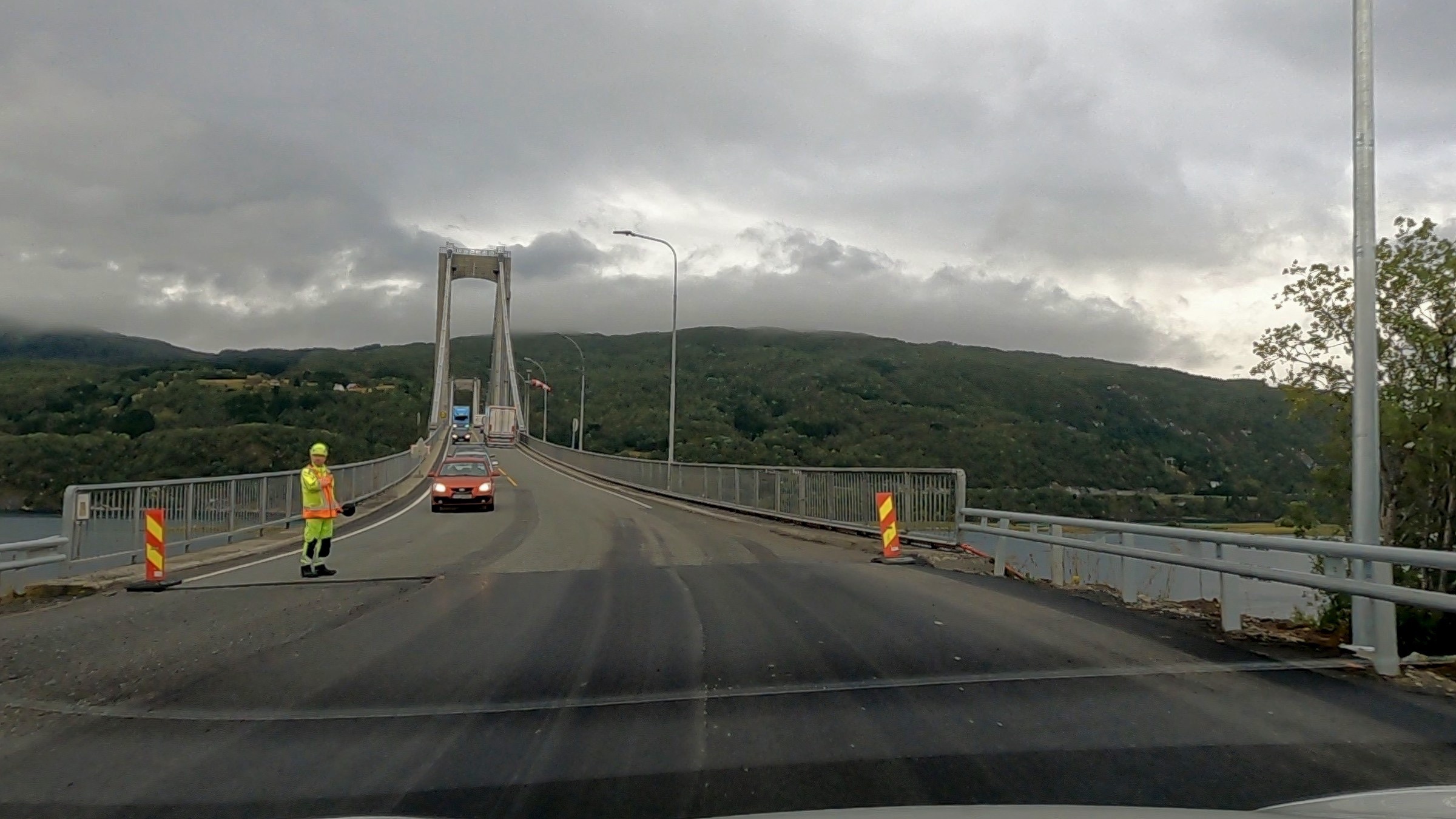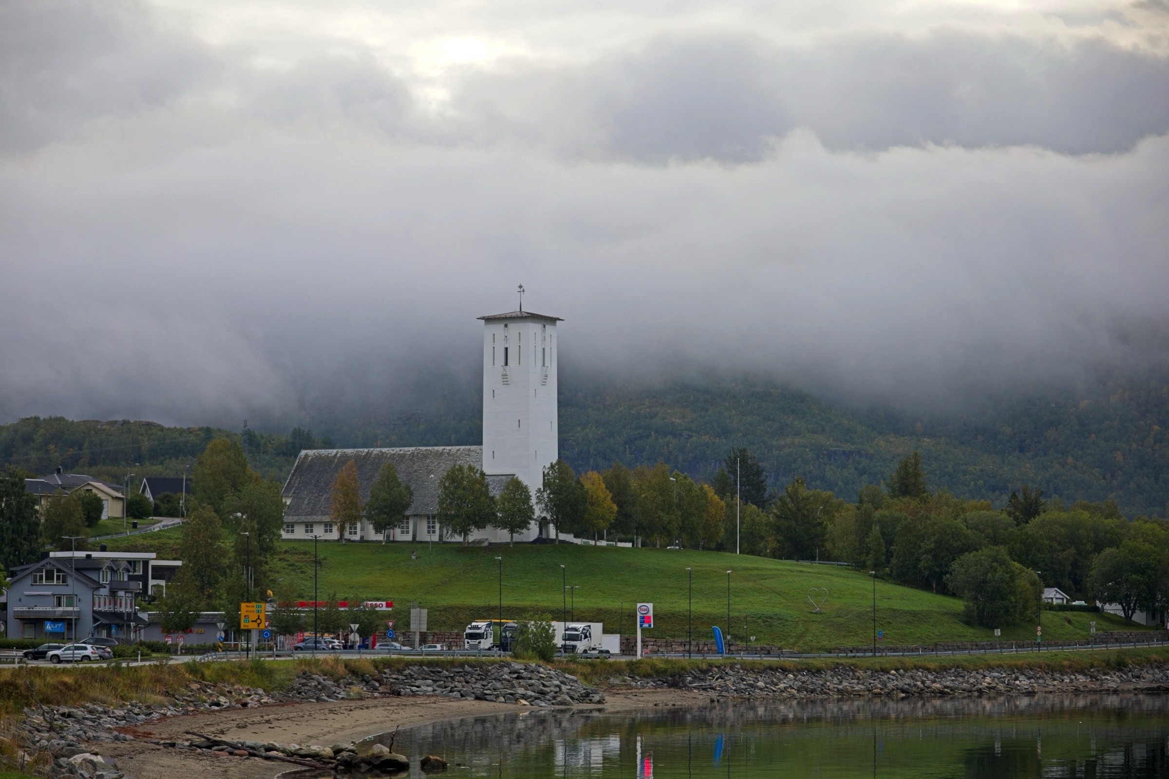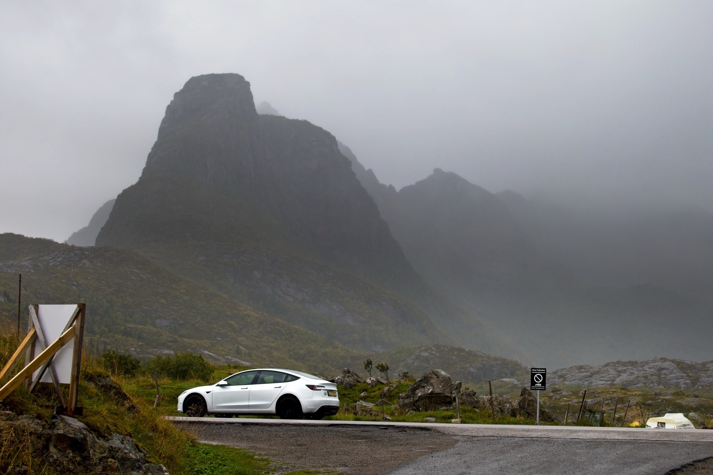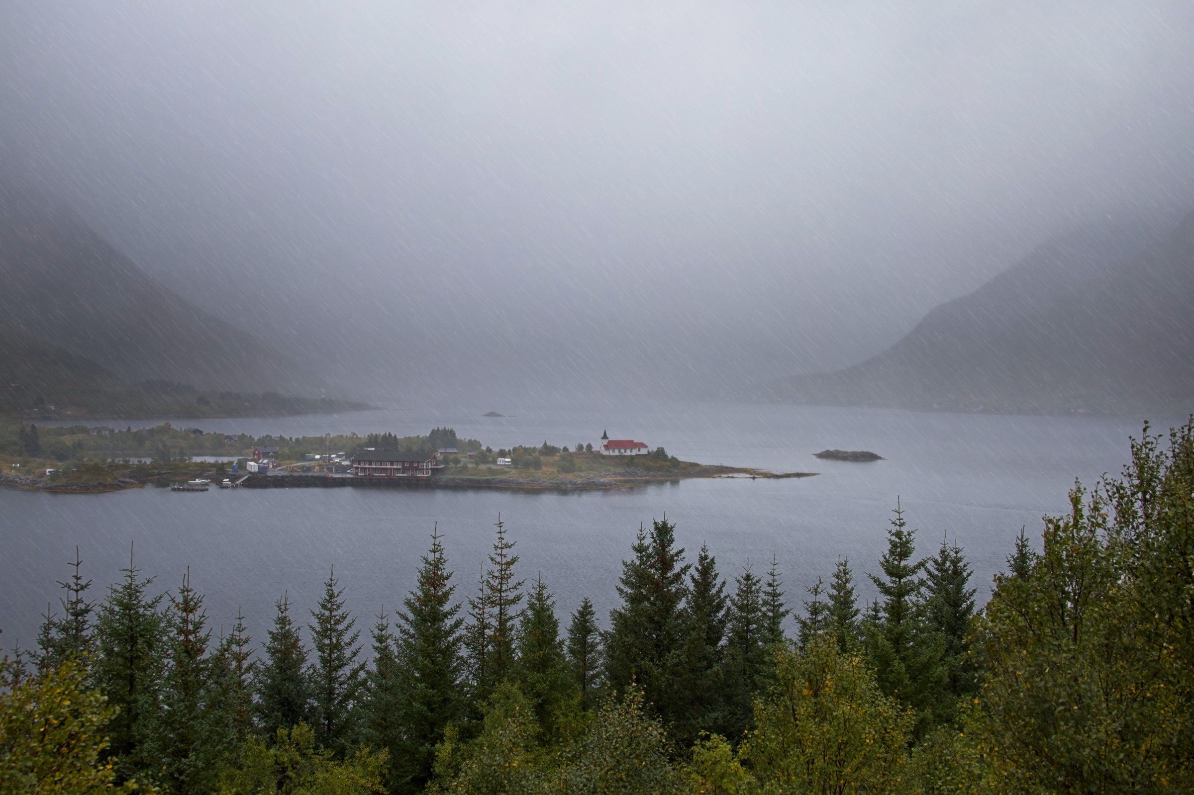 I hear myself say that I will not complain about the weather and as a general rule I do not. Then it comes to visiting Lofoten which, I'm told, has some of the most spectacular scenery, not just in Norway but in the world. To enjoy scenery you actually need to see it. There were still vestiges of low cloud hanging around Narvik is I headed, essentially, west with a lot of wiggles around fjords. The picture looking back at Narvik, above, sums up the morning conditions. There were even spells when the sun broke through, short but promising. As I approached Lofoten the wind picked up and the rain started, not a little shower mind you and effectively the scenery was obscured. I am not going to complain about the weather but let’s say it put a dampener on this afternoon’s sight seeing. Did I mention it is also cold not including the sizeable wind chill. As I write this the wind can be heard buffeting the hotel from time to time. I really am out on the North Atlantic coast so what should I expect. Fingers crossed for tomorrow and I have plenty of warm clothes. So ride along with me on a less than perfect drive. There was an amazing amount of commercial traffic and, for a stretch, road works with either traffic lights or convoy system every 5 kilometres. So stop start, dodge the trucks was the order of the day. The first eight images were before I crossed the bridge to Lofoten and I was happy with. I have posted some pictures from Lofoten but do not be fooled these are the handful where there was actually something to see, even a rainbow when I was having a walk while the car charged at Svolvaer. I’ll finish with a view from my hotel room window after an ejoyable dinner. I was so glad that the restaurant was open, a slight surprise, until I noticed a coach arrive to make up numbers.