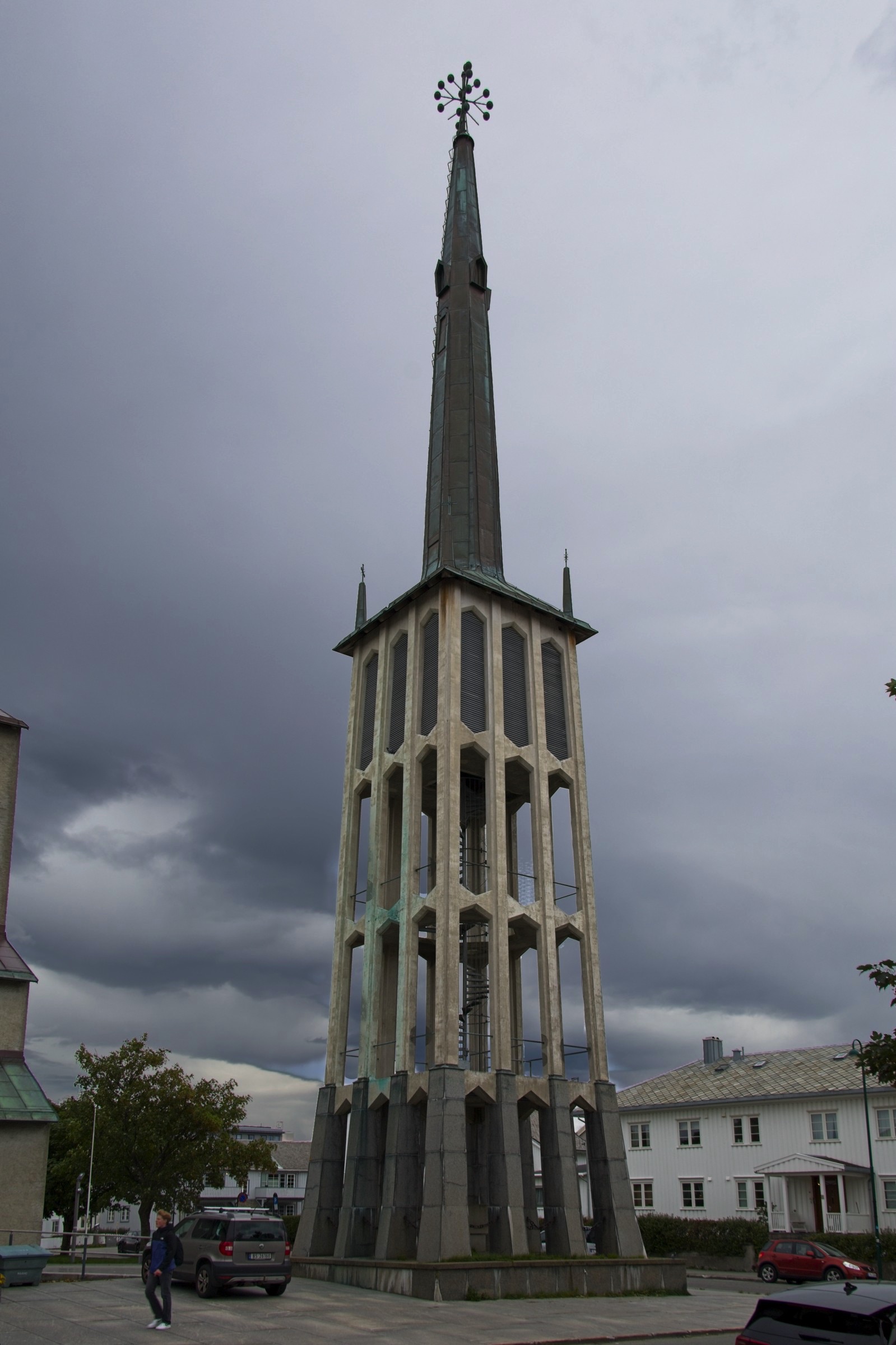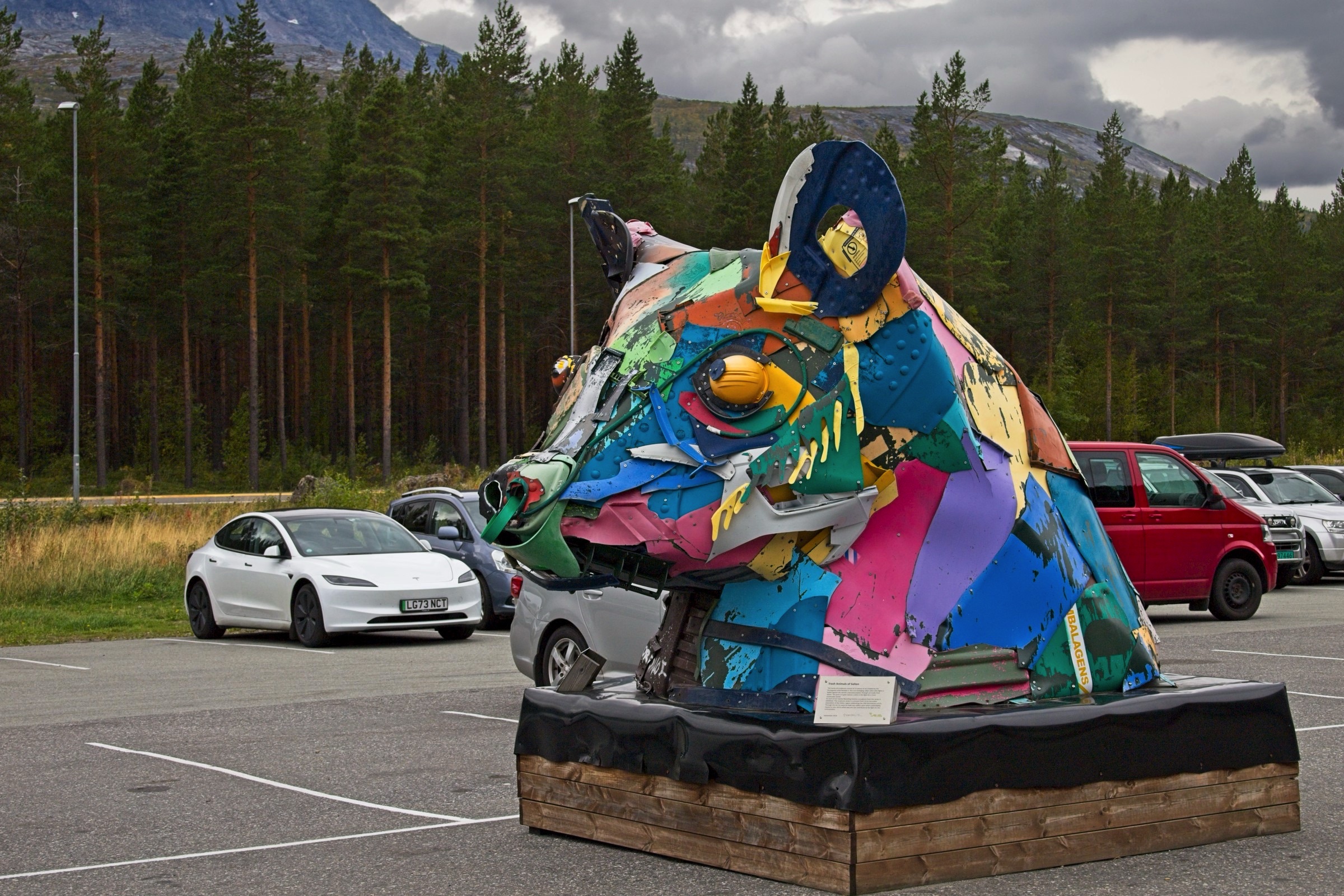 A milestone was achieved today as I entered the Arctic Circle. To be honest not much changed although the crossing takes place about 600m above sea level which at this latitude means we are above the tree line. I don’t much do selfies. I can remember three on my travels, at the Fin del Mundo in Ushuaia, on the South Kaibab Trail in the Grand Canyon and at the Crossroads on Highway 61 in Clarksdale Mississippi. Rare enough to be a headline for today. 1990 is important as the Arctic Circle is not fixed. it depends on the axial tilt of the Earth as it marks the most southerly latitude where the sun does not rise all day on the winter slstice and does not set all day on the summer solstice. It was at this latitude in 1990. It does not move far thourgh. When I opened the curtains in Sandnessjoen this morning an impressive crystal clear vista was there with a little sunshine and a dramatic sky which you can see below. It bode well for the day. As it happens sun was a precious commodity but it remained dry until I got within 30 minutes of my hotel here in Fauske. That is why there is an umbrella in the car. Once on my way I stopped at the spectacular Helgerland Bridge with a view along the fjord to Sandnessjoen and I have added a couple of pictures. My first major stop of the day was at Mo I Rana to see one of Anthony Gormley’s huge sculpures, Haveman. It is a little tricky to get to as it is offshore in a lovely housing area. Again I have added a few photos including the lovely houses, some with living roofs. A stop for a little charge and a coffee in Mo I Rana and it was off on the climb to the Arctic Circle. There is a little visitor centre, I noted, only open 10 - 17 hours. No-one lives for miles so all staff are commuters. A nice commute though. There are a number of memorials as well as the marker and snow on the mountains round about. Of course there were some happy trolls. From there it was largely downhill, steep in places and I stopped at the Northland National Park Center hoping for a snack as the information indicated a cafe but it was in fact a burger joint. Too much for lunch so I dipped into my travelling reserves, grabbed a picture of an "animals from scrap" sulpture and headed on down to Fauske. Although my destination for the night it was also an interemediate stop to charge the car for a loop out to bodo and back with a little walk at Saltstraumen to see the maelstrom, under another impressive bridge, where differential currents interact. It was a nice short walk with other interesing things to see. I shot a panorama with the iPhone which is included with a few others and then a few from Bodo after a couple from Fauske including their Jet d’Eau. I did not spend long in Bodo but liked the bell tower at the cathedral and a strange Jesus crucfied but with no cross. At the harbour this is a sizeable fishing fleet and there is no doubt where you are, whe you decipher the blocks.