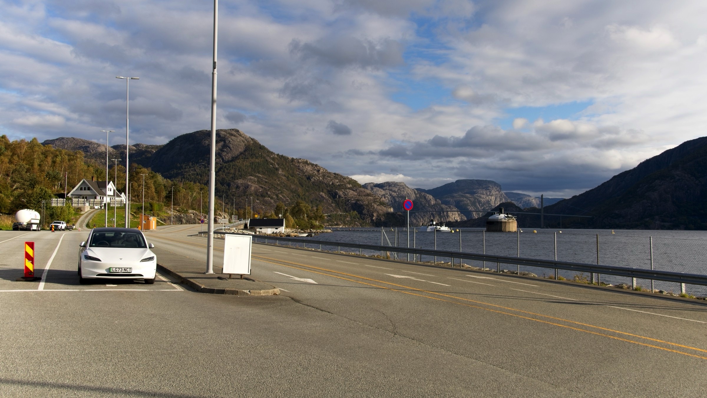 It felt a bit like winding down today with the relatively short run south from Stavanger to Kristiansand, my last port of call for this trip in Norway. The majority of the drive was along the main highway E39, which even became a dual carriageway for a couple of short stretches including to the outskirts of Kristiansand. I did not start on E39 as I returned through the Ryfylke tunnel which is how I came to Stavanger. This is not any tunnel. It is the world's longest subsea road tunnel, at 14.4 km, and the deepest tunnel of any kind. The important point is you simply drive through for a modest toll. The reason for this route was to return to Lysefjord to view it from the road and the result was another ferry. This one from Oanes to Lauvvik which was on a very small ferry, not part of the national network and therefor not chargeable to my FerryPay account. Payment was by card with one of the two crew managing the loading and unloading. On the way across I had a nice chat with a Dutch couple with a camper van who were great fans of Scotland having made four camper van trips there over the years. From there it was small roads for about 20km to join the main highway which was remarkably quiet making for an easy run. As is the case with these road days I check the timing and then look for places of interest that I can accommodate with respect to my planned arrival at my destination. In this case there were really two with also a few viewpoints programmed into the navigation system. My main stop was at Flekkefjord and its Gronnes Batteri. What a nice little town it is with its white wooden buildings and a great bakery. The gun battery was a little quaint as you will see in the photos. Next, after a charge at Lyndal, was a recreation area at Risebank which is as near as was practical for me to reach the most Southerly point in Norway before turning East to Kristiansand. It was a very easy day but with little to photograph so here is what I captured starting with the view along the Lysefjord, above, where I was yesterday on the boat. The next three are at the ferry. When I arrived there was no signs of life and a little panic set in “was the ferry running”. A quick Internet check confirmed that the service was half hourly and it would be about 20 minutes until my crossing. I took a couple of photos and went to the ever available toilet at ferry ports and when I came out my Dutch conversationalists and a couple more cars had arrived and there was the tiny ferry coming in. The return trip for the ferry was a one vehicle ride and only just! I’ll jump straight to Flekkefjord and it’s battery for the next seven images. I liked the street art and the girl with upside down text is actually a tile on the promenade, of which there were many, some with words others just images. A nice little town. There are a couple of photos from Risebank where there were a few enjoying a little afternoon sunshine. There is a set up in the water as a play area which I am sure is popular in the summer. The last two photos were taken this evening. It was eerily quiet in the hub of the city with mainly empty restaurants, including my very good pizza place. As the earlier rain had relented I took a walk back along the waterfront and found the fortress nicely illuminated. I look forward to a gentle exploration of Kristiansand tomorrow.