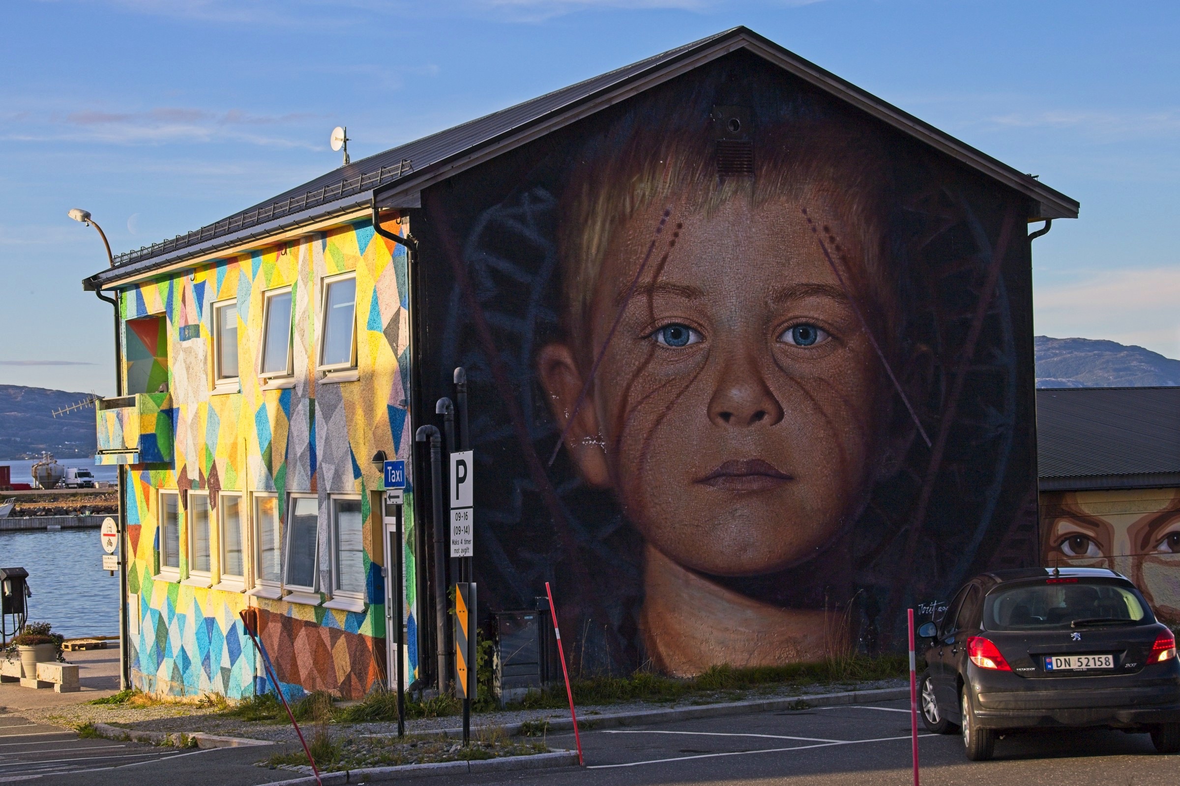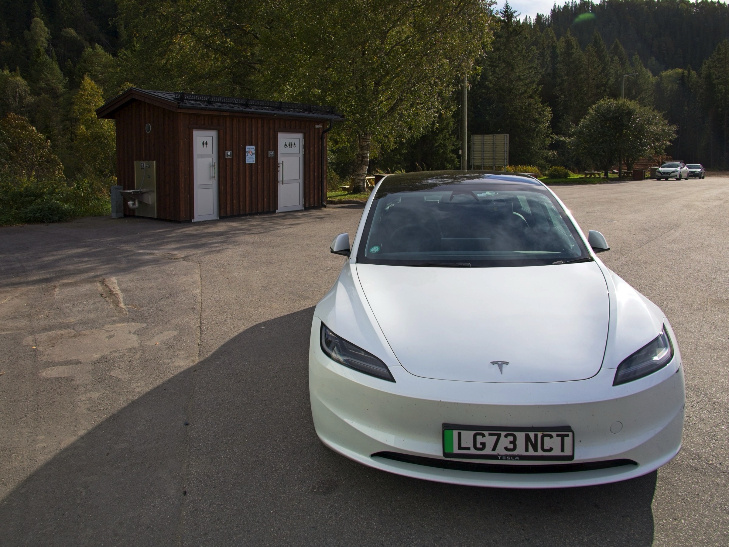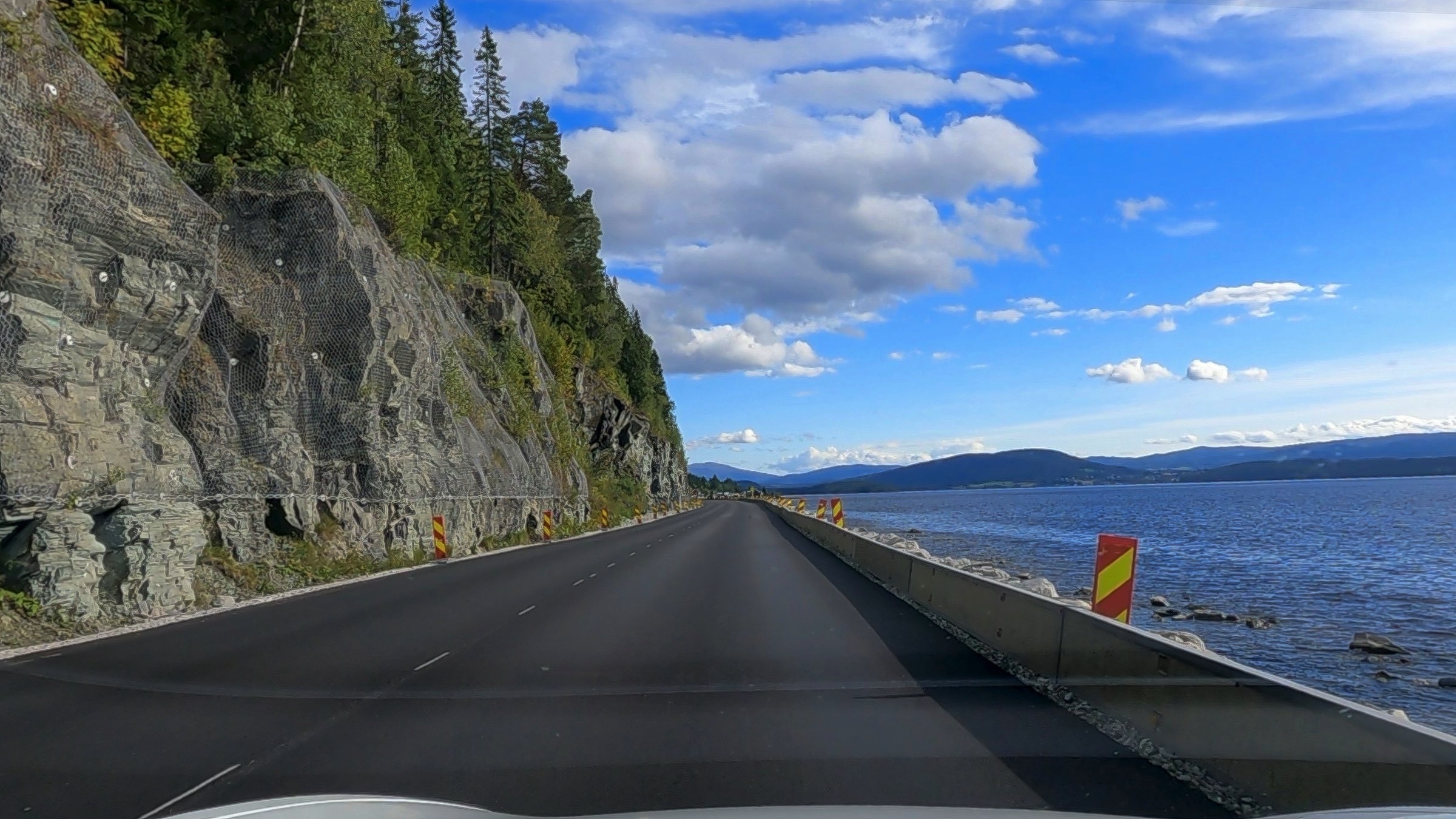 Another long day is progressively taking me to the Arctic Circle. Norway is quite a big country. :-) It has been a beautiful run through varying countryside, alongside fjords, along valleys with manicured farmland, rivers and potential large waterfalls (in spring), through small largely industrial towns and not much traffic. It was a beautiful morning in Trondheim and that was pretty much it for the day. As the sun set here in the port of Sandnessjoen the moon came up and was an incredible sight from my hotel room window, such that it is the headline for today. Often when I include the moon in a photo I make it slightly larger to emphasise it but not this evening. I don’t think I have seen the moon this large in a normal photo that I have taken. As I’ve started here in this little port right out on the West coast and which I’ll visit again, briefly, when I sail back down the coast in a week or so, here are a few more pictures. I will then head back to Trondheim for a couple of photos at the hotel. I noticed a roadside point and on my sat-nav it identified it as the Tirpiz memorial, which peeked my curiosity and so stopped to have a look. It commemorates the allied airmen lost while attempting to sink this German battleship. Simple and to the point in a lovely spot. Remember Norway was neutral in WW2 so have no military connection. Along the E6 there are regular rest places and most if not all have immaculate toilets and often a nice view of the local ountryside as the one in the photos did. Much of the E6 today was a joy and there were even ocasional places to stop and enjoy the views. About 300km north of Trondheim I crossed from Tronland into North Norway and there was a very welome cafe, restaurant, shop and toilets. I often can get a little sleepy mid afternoon and was planning to stop at the next rest area when, lo and behold, this wonderous place appeared securely guarded by a Troll. Would you believe I had a Costa coffee! From there it was about 100km to a Supercharger and then a further 65 km to get me here just after 5pm. It is certainly one of the most scenic drives I have taken including its variety. I have added a few frames from the GoPro to give a little bit of an idea.