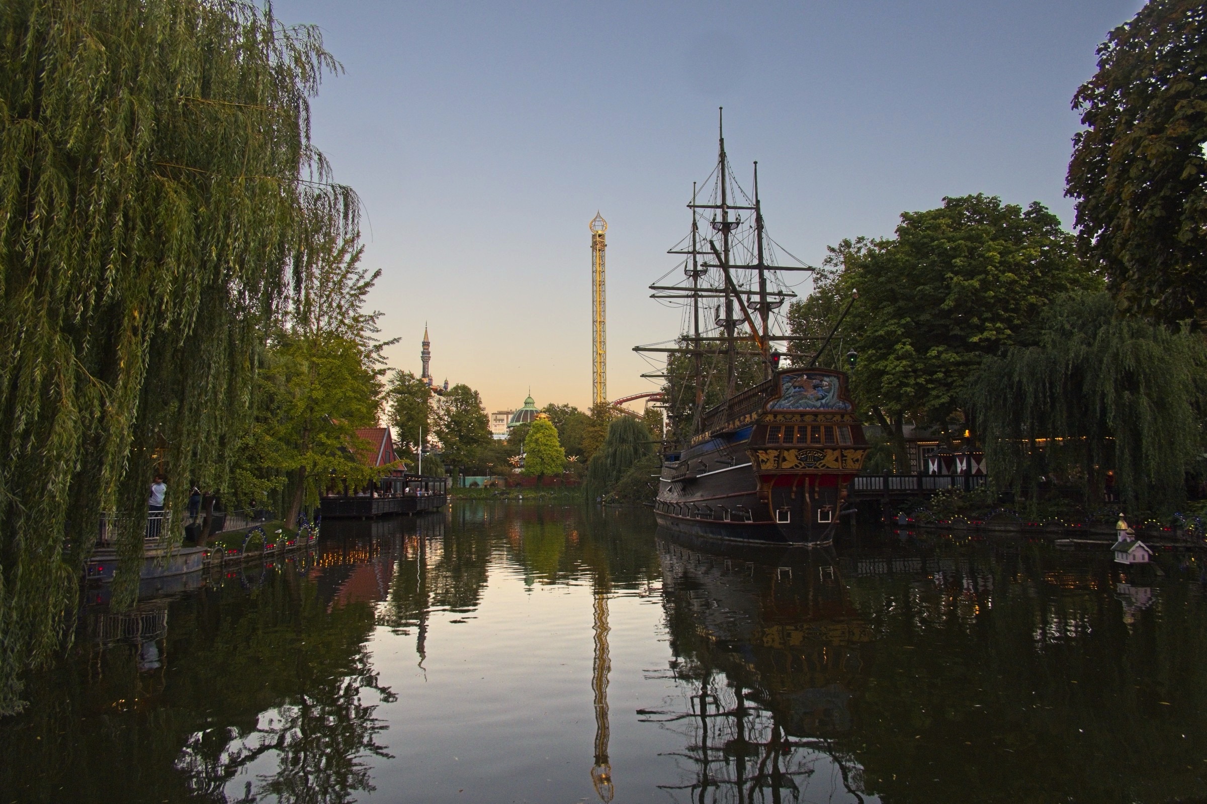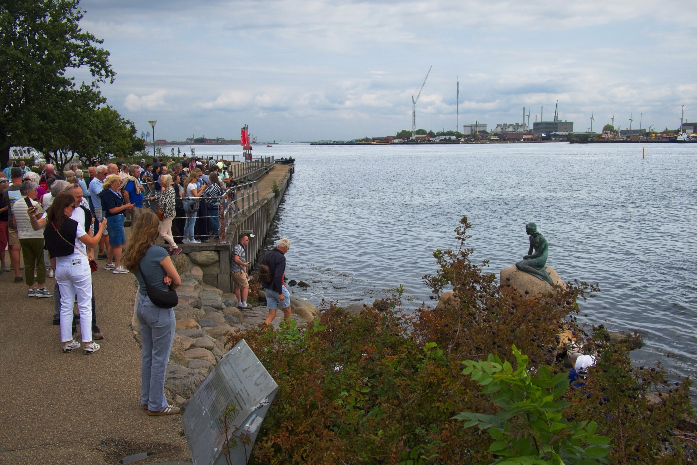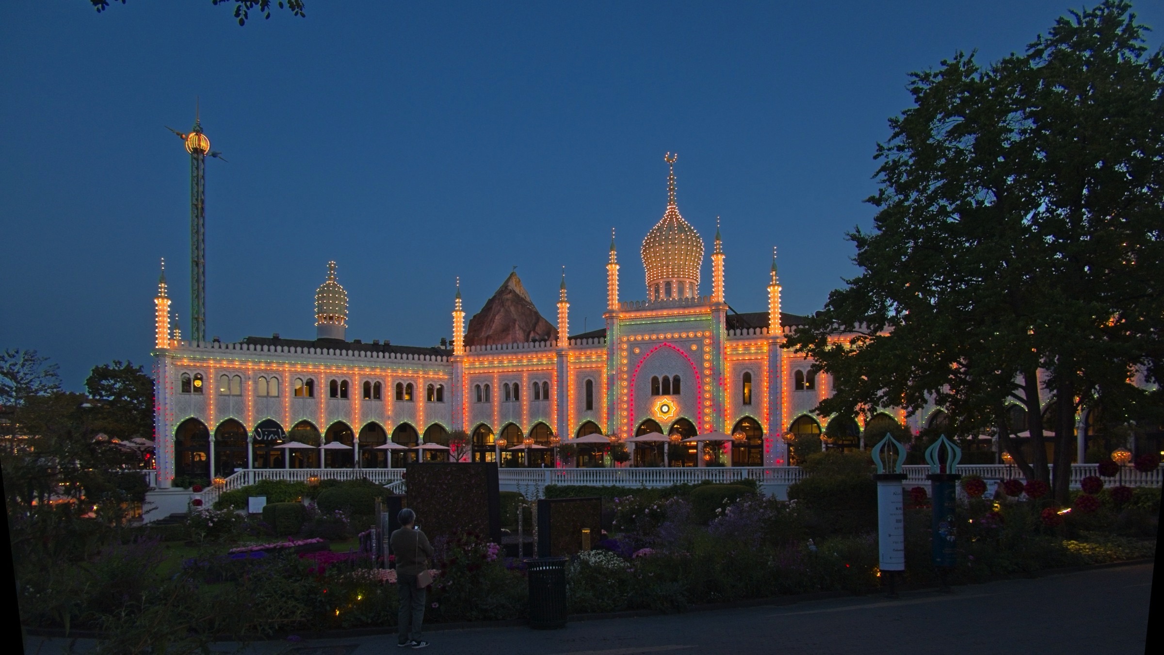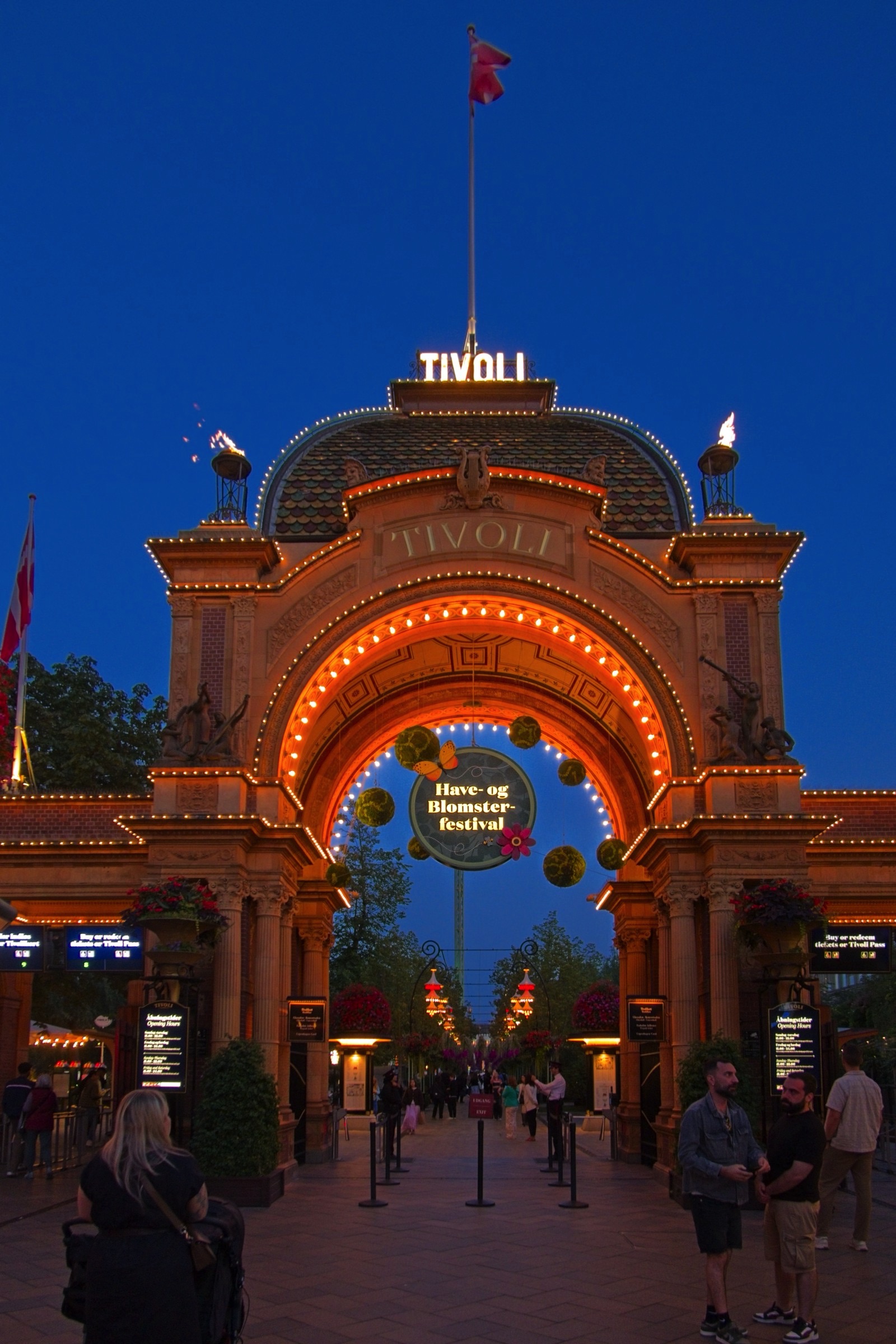 While at a gentle pace and interupted with some Metro rides and a short hop on a harbour bus I walked close to15 km today and seem no worse off as a result. I also had a break to try a local staple, Smorrebrod, for lunch in a nice pub off Nyhavn. It has been a grey day after an early morning shower with the sun coming out as I neared the end of my wander. With just a day I could not see all of the sights so picked a sample which allowed a sensible trip through a fair amount of the city centre. I always try to wander, sometimes a little lost in new cities. As I noted yesterday, the hotel is adjacent to Bella Center Metro station and the M1 line whisks you into the heart of the city in 20 minutes. I visited the Botanical gardens, passed the observatory, had a look outside the Orenburg Palace. Then it was down to the round tower, the old University Library and on to the Chritiansands Palace. Next it was on the M3 Metro to Osterport for the walk down to the Little Mermaid. A short walk along the harbour took me to Nordre Tolbod to jump on the harbour bus for the ferry ride to Nyhavn in time for a late lunch. Suitably fed and watered it was time to wander around Nyhavn, as the light improved, looking for interesting sights. It certainly has a unique aspect and it is no surprise it is a big attraction. It was not too busy with plenty available tables at the miriad of restaurants. That was about me done so walked back to the open oval of Kongens Nytrov and its Metro station for the ride back to the hotel. Very satisfying. The main concern was being hit by a bicycle as I occassionally looked the wrong way as apparently the Danes travel on the wrong side of the road! They start them young as you can see below.I note that there were lots of renovations going on restricting access to some attractions but this was not going to be an indoors day overall. I may come back and cover more of Denmark but this trip is focused on Norway. So here we go with a wistlestop review of my day. Of course the little Mermaid above was surrounded. How about Tycho Brahe, look him up, at the observatory which is now an AI research centre. Grey heron and a nice view in the Botanical Gardens. A couple of palaces with some guards on duty. Concern if you are a troll. Watch these Danes, as I said they drive on the wrong side of the road. Up the Round Tower and through the Library with some interesting art and books. Lots of bikes and a nice statue at Gammel Strand by the Metro station. Did I mention how cool the Metro is? The harbour bus is included in the public transport day pass, and is a little less strenuous than other ways to get around the harbour. The Brooklyn pub and its Smorrebrod is my kind of place. Just a man preparing the food behind the counter and a young waiter keeping things moving and twenty metres from the main Nyhavn strip. SO that brings us to Nyhaven. A walk across Kongens Nytrov to the Metro and then back for a cold drink at the hotel. I promised some snaps from the Tivoli Gardens from yesterday evening and they are at the end of the post.