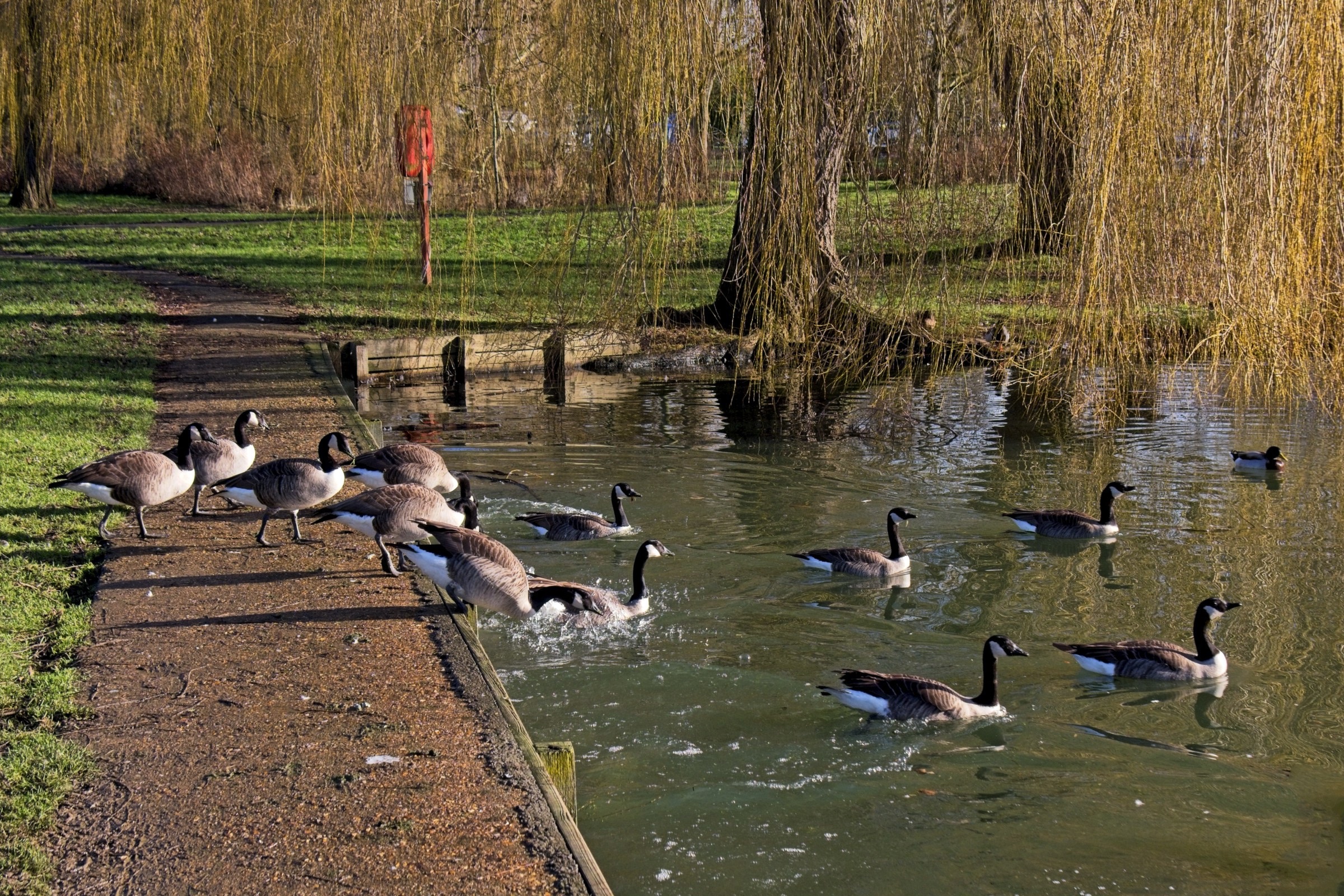 The weeks come and go with a usual pattern but it was nice to break the pattern with a pleasant lunch with a friend, Bob, from my aerospace days yesterday. It was an opportunity for a visit to the town market in the redeveloped market square. It is not on the scale it once was but the updated square certainly make it feel more like a nice market. The riverside park has some classic weeping willows and, like many parks in this area, a domestic population of Canada geese. There is a lot of work going on in the parkland at Anglesey Abbey to “mud proof” the paths with leaf litter. Despite the grey weather there were plenty of visitors enjoying the snowdrops, early daffodils and other winter colour.