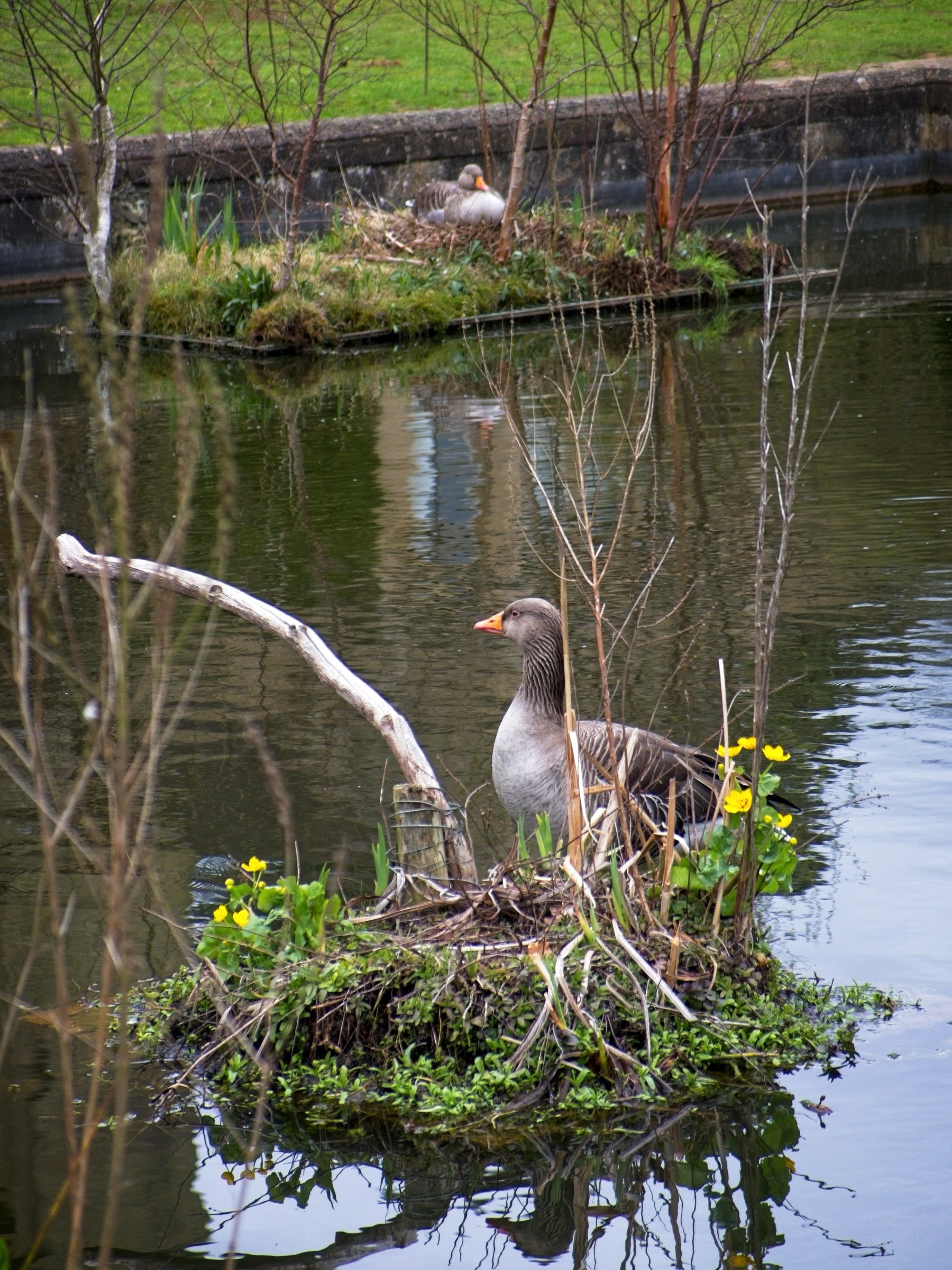 My walks over the past few days have been largely in gardens. The great-crested grebe is nesting in the Swiss Garden in a very accessible location as are the greylag geese at the Lodge. The cherry tree by the stable block is a treat at this time of the year. As an aside, my first location at the Lodge was by the windows below the clock. The remainder of the post contains images from the Cambridge University Botanical Garden. The last couple of photos feature shadows, a feature which I enjoy when the sun shines.