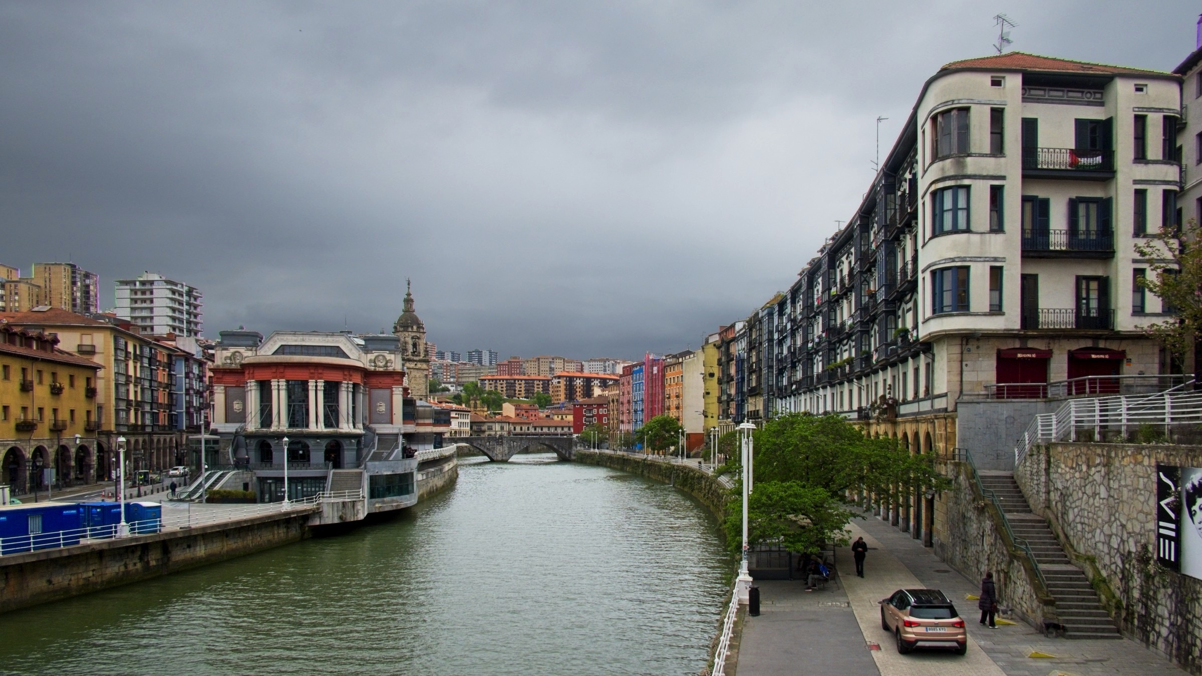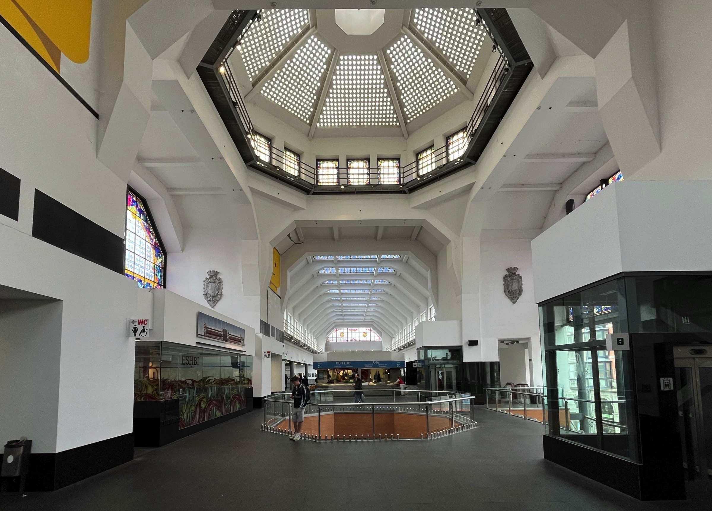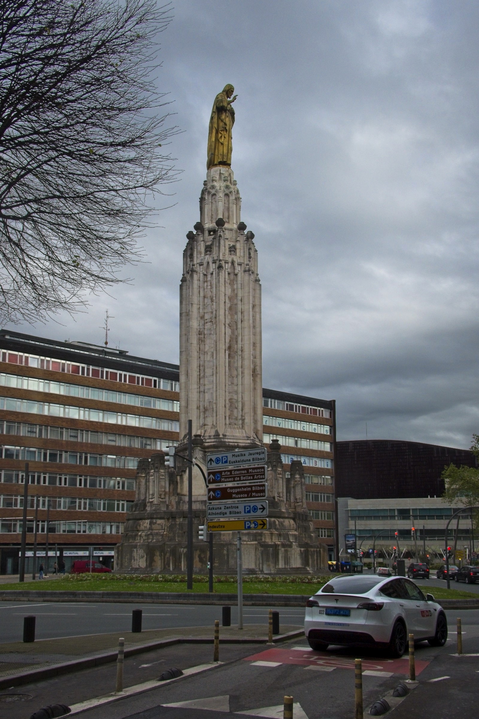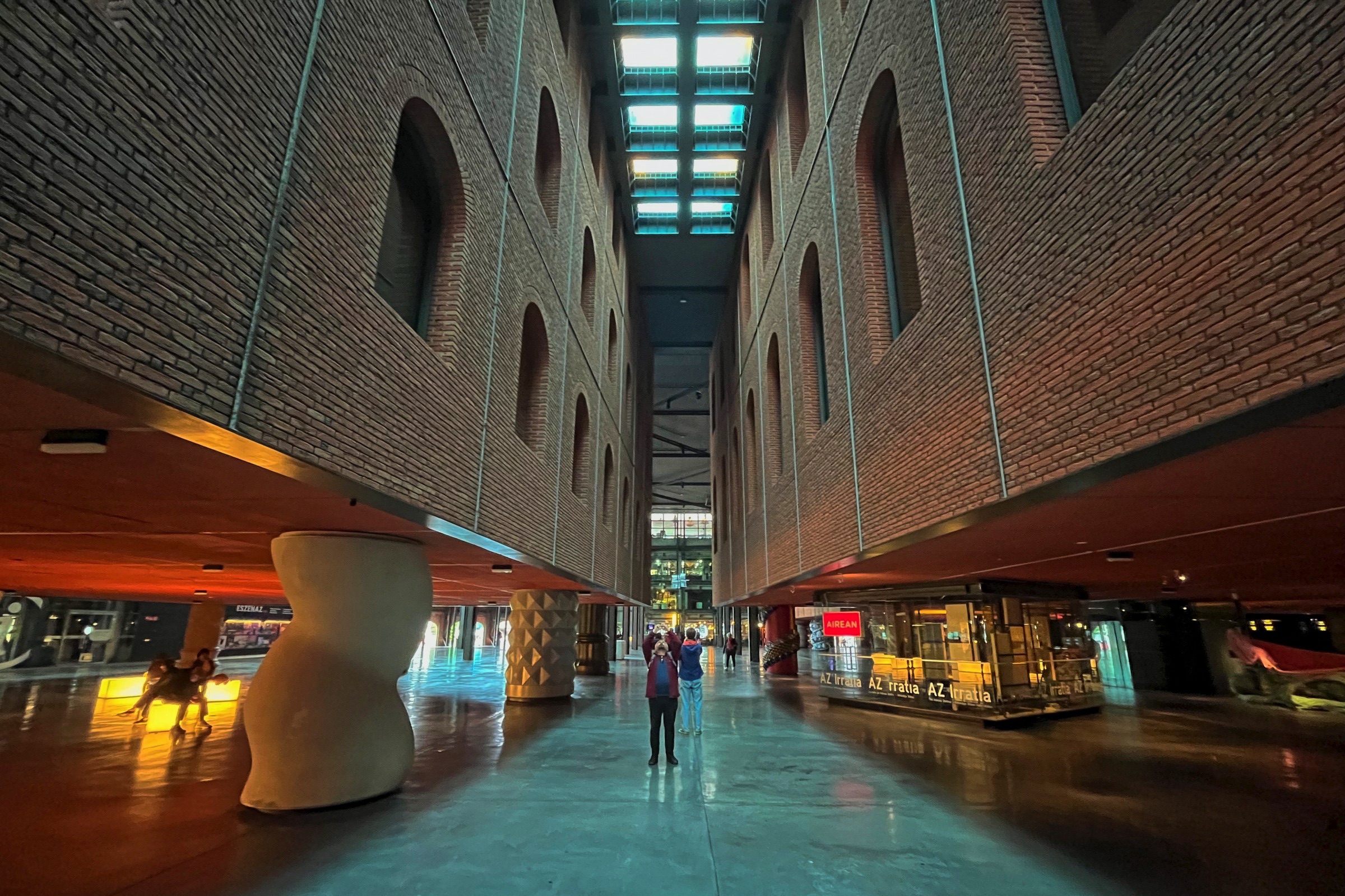 I am not a city person nowadays but a visit to the Basque country requires a visit to Bilbao to see the Gugenheim Bilbao and the Bizkaia Bridge. So if I am visiting I will try to create an exploration plan which will connect these places with others to give me a sense of the place. First off there is an excellent public transport, buses, trams, trains, funicular and suspended gondola on the Bizkaia. A day travel card covers most options but those that are not covered are cheap. The Bizkaia as a foot passenger is €0.60! There were two surprises, the Ribero Market and the amazing Philippe Starke designed interior creating the Azkuna Zentroa-Alhóndiga Bilbao, a modern multipurpose space inside an old structure. The funicular to Artxanda is worth the ride but not the most amazing view. Just walking around between tram and subway rides (it is a big city) there is street art for interest and even a statue of Jesus who appears to blessing one of the very rare electric vehicles I have seen in the Basque Country. I will not tour guide you through the photos which I hope will give you a sense of place and of my day. It started as the rain stopped and ended as the rain started again. I could not have planned it better.